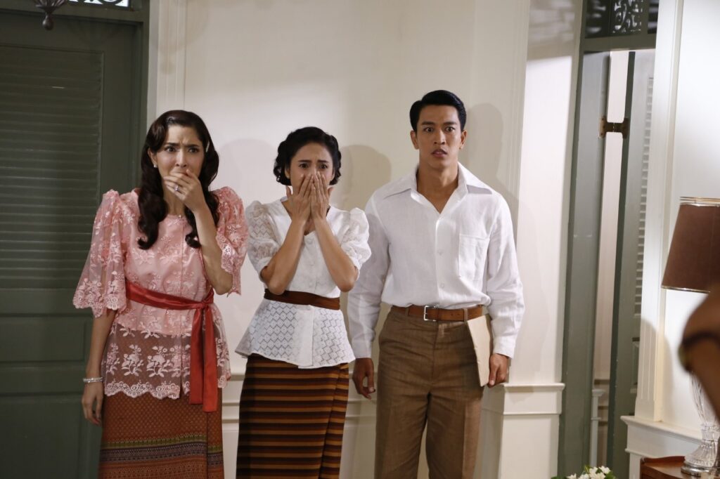 เบื้องหลังฉากนี้ทีมงานยกกองไปถ่ายทำกันที่ บ้านท่าไม้ ซึ่งในซีนนี้ต้องบอกก่อนว่าเป็นคิวแรก ๆ ที่มีการถ่ายทำ และตัวของฝ้าย และ อั๋นก็เป็นการร่วมงานและเจอกันครั้งแรกด้วย แต่เจอกันครั้งแรกก็ต้องมาเลิฟซีนโหด ๆ กันซะแล้ว ทำเอาทั้งคู่ เขิน และ พยายามชวนคุยกันเพื่อละลายพฤติกรรม อั๋นที่ซีนนี้พอรู้ว่าต้องจูบจริงก็รีบเข้ามาไหว้ขอโทษขอโพยกันก่อนถ่ายจริง ด้วยซีนนี้ ผู้กำกับชัชวาล ศาสวัตกลูน เป็นซีนต้น ๆ เรื่องเลยอยากจะให้ออกมาดูแซ่บที่สุด เลยขอให้ทั้งคู่จูบจริง ยิ่งซีนนี้เป็นซีนที่เกิดจากโดนของด้วยทำให้ต้องเพิ่มความหื่นของอั๋นเป็นสองเท่า ด้านฝ้ายก็ต้องงัดลีลายั่วยวนออกมาให้ได้มากที่สุด ด้าน กอล์ฟ พิงกี้ และเจี๊ยบ ที่ในเรื่องไม่มีบทแต่ต้องงัดอินเนอร์ของการตะลึงออกมาให้เนียน แต่ดูเหมือนหนุ่มกอล์ฟจะไม่ยอมออกจากหน้าฉากไปไหนคอยป่วนแซวอั๋นอยู่ตลอด เรียกว่ากว่าอั๋นจะเรียกสติได้ก็หลุดขำไปหลายรอบเหมือนกัน เมื่อทุกฝ่ายพร้อม ถ่ายจริงเริ่มที่ อั๋น นั่งทำงานอยู่ในห้อง ฝ้ายทำทีเดินเข้ามาหา เห็นอั๋นเครียดเลยเอาผงมาโรยไฟให้เกิดกลิ่น และอ้างว่าจุดแล้วจะทำให้คลายเครียด อั๋นเริ่มมีอาการร้อนวูบวาบ ฝ้ายเห็นที ทำเข้าไปยั่วยวนจนอั๋นทนไม่ไหว บรรเลงจูบไม่ยั้ง อั๋นฉีกเสื้อถกผ้าถุงฝ้าย ด้วยสายตากระหายจนตัวเองพลาดล้ม ฝ้ายยกขาขึ้นอั๋นมองตาวาวคลานเข้ามาหาฝ้าย และจูบ เป็นจังหวะเดียวกับ พิงกี้ กอล์ฟ เจี๊ยบ พังประตูเข้ามาเห็น อั๋นได้สติช็อค พิงกี้ร้องกรี๊ด วิ่งออกจากห้องไป ฝ้ายยิ้มเยาะมุมปากที่แผนการสำเร็จ มาลัยและวิศาลจะจัดการกับเหตุการณ์นี้อย่างไรต่อ ติดตามได้ในละคร “เรือนร่มงิ้ว” วันอังคารที่ 4 พฤษภาคมนี้ เวลา 19.00 น. ทางช่อง 8 ห้ามพลาด และสามารถรับชมย้อนหลังได้ที่ แอปพลิเคชัน AIS PLAY เท่านั้น
