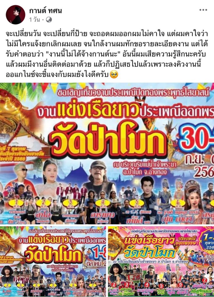 เดือดระอุ! นักร้องหนุ่ม “กานต์ ทศน” โพสต์ระบาย ”ผมโง่เองที่ไว้ใจ“ ดราม่าถูกยกเลิกงาน ยันไม่รอบคอบเอง
