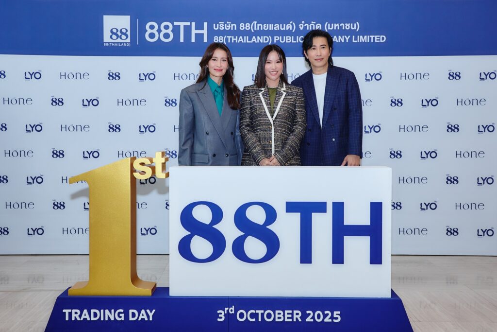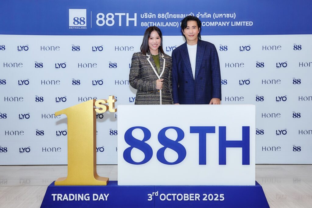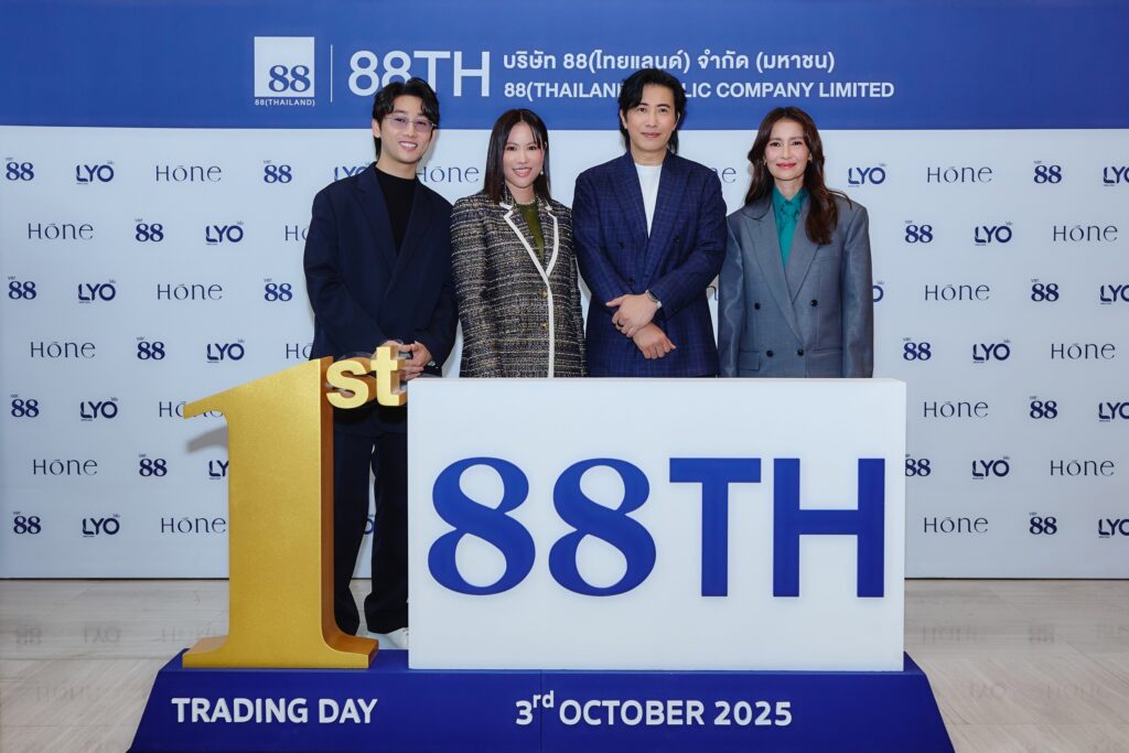วันที่ 3 ตุลาคม 2568 ถือเป็นอีกหนึ่งวันประวัติศาสตร์ของ บริษัท 88(ไทยแลนด์) จำกัด (มหาชน) หรือ 88TH โดย นพรัตน์ มาลัยวงค์ ผู้ก่อตั้งและกรรมการบริษัท หลังจากประสบความสำเร็จกับผลิตภัณฑ์ดูแลเส้นผมและหนังศีรษะ “LYO” ที่ครองใจผู้บริโภคชาวไทยมากว่า 4 ปี วันนี้ได้ก้าวเข้าสู่การซื้อขายวันแรก (First Day Trade) ในตลาดหลักทรัพย์ mai อย่างเป็นทางการ ในโอกาสพิเศษนี้ “หนุ่ม-กรรชัย กำเนิดพลอย” พาร์ทเนอร์ธุรกิจของ LYO และผู้ประกาศข่าวชื่อดังจากรายการ เที่ยงวันทันเหตุการณ์ และ โหนกระแส เดินทางมาร่วมมอบดอกไม้และแสดงความยินดีกับ นพรัตน์ มาลัยวงค์ อย่างอบอุ่น พร้อมกันนี้ยังมีบุคคลสำคัญจากหลายวงการร่วมแสดงความยินดี อาทิ คุณพาขวัญ วงศ์พลทวี ประธานเจ้าหน้าที่ฝ่ายการตลาดและพันธมิตรธุรกิจ (CMPO) จาก Plan B Media คุณแอน ทองประสม พรีเซ็นเตอร์ “ไลโอ สูตรสมุนไพร” คุณปอนด์ ออนนิว อินฟลูเอนเซอร์ชื่อดัง