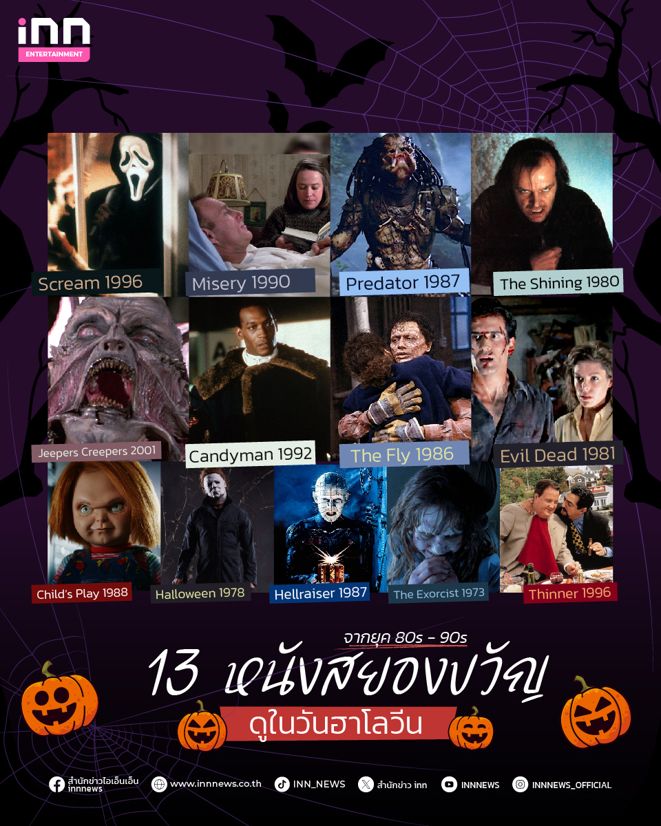 คืนวันฮาโลวีนปีนี้ ถ้าหากยังไม่รู้ว่าจะหยิบหนังเรื่องไหนขึ้นมาดู หนังทั้ง 13 เรื่องก็เป็นอีกตัวเลือกที่น่าสนใจ เพราะไม่ว่าคุณจะเลือกหนังเรื่องไหน ก็รับรองได้เลยว่าจะได้รับความสนุกและระทึกขวัญ จากกลิ่นอายของหนังสยองขวัญยุค 80s – 90s เหมาะกับฮาโลวีนอย่างแน่นอน ขอให้สนุกกับการดูหนังครับ