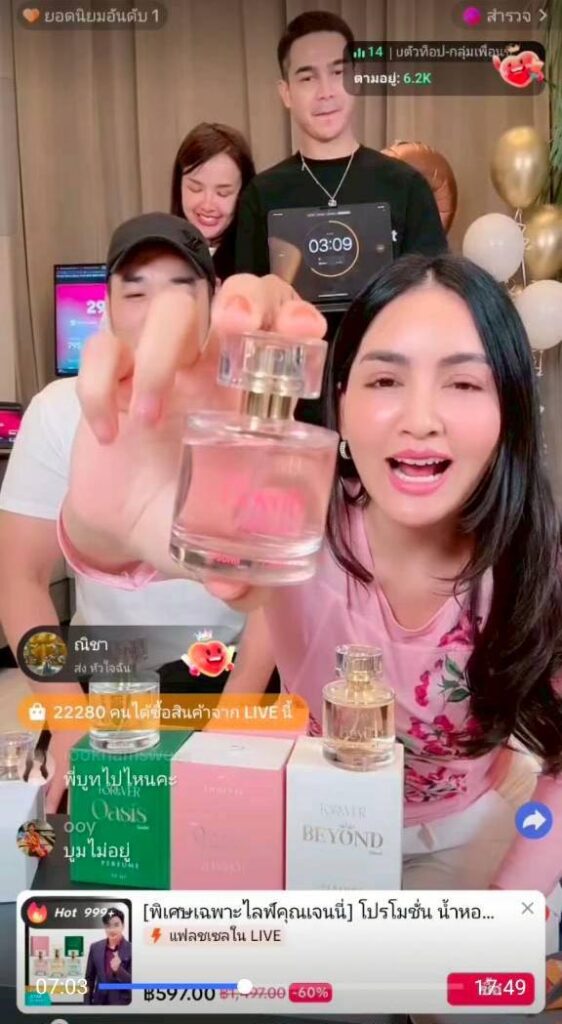 ด้าน “เจนนี่ ได้หมดถ้าสดชื่น” ถึงกับเอ่ยปากกลางไลฟ์ว่า ครูก้อยขายได้หรอยมากกก! ขายเก่งมาก ขณะที่ “ครูก้อย นัชชา” เผยว่า น้ำหอม Forever เป็นกลิ่นแห่งแรงบันดาลใจที่ออกแบบมาเพื่อเติมพลังให้ทุกวัน มีทั้งหมด 3 กลิ่น ได้แก่ Beyond ให้ความรู้สึกหรูหรา มั่นใจ ดุจนางพญา, Lovely ให้ความรู้สึกหวาน สดใส น่ารัก น่าหลง, Oasis หอมสะอาด สุขุม สดชื่นแบบลักซ์ชัวรี