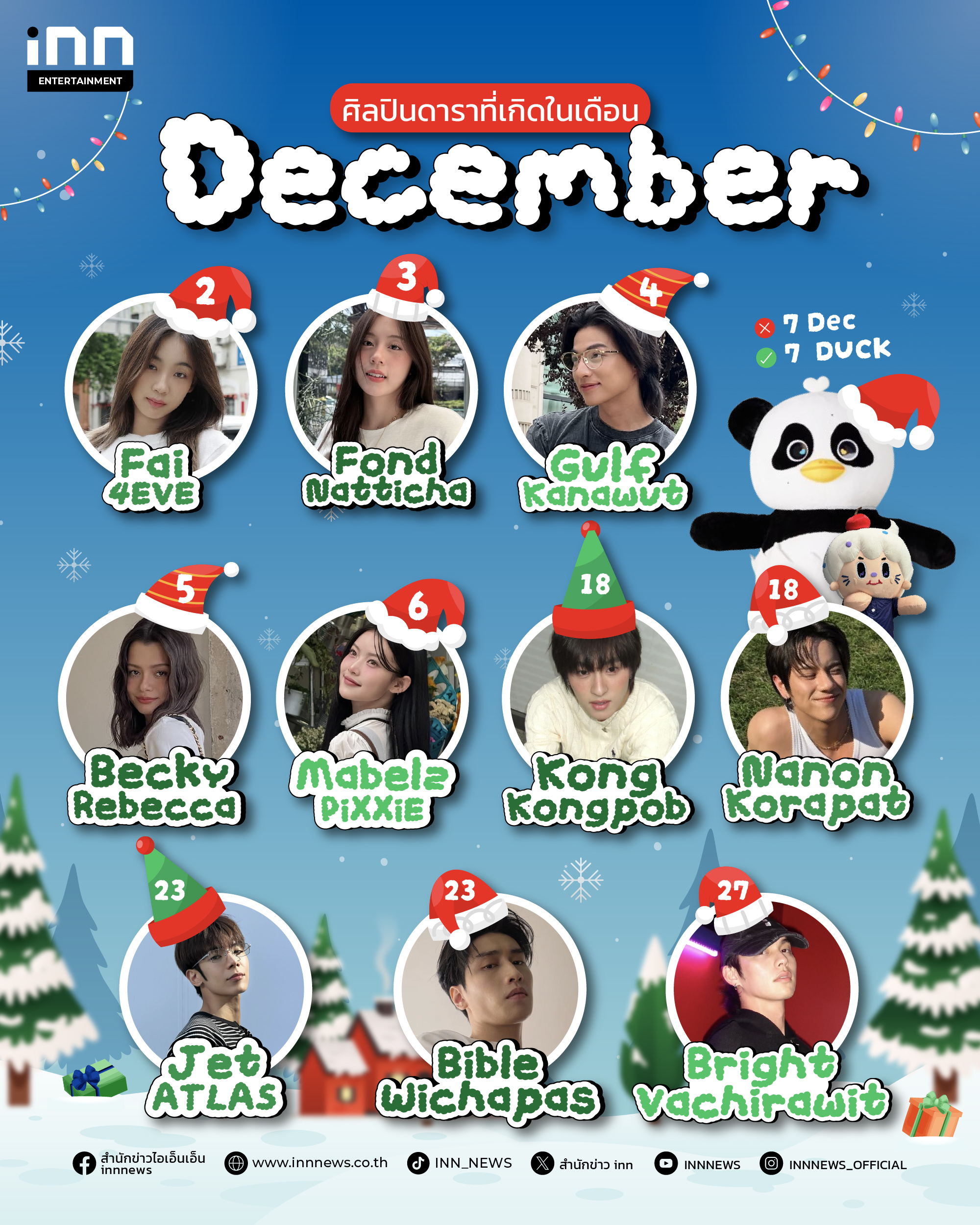 สำหรับ นักแสดง-ศิลปิน ที่เกิดในเดือนธันวาคมนี้ ทางเราก็ขอให้ ศิลปิน และ นักแสดงทุกคน มีความสุข มีผลงานปัง ๆ ออกมาให้พวกเราและเหล่าแฟนคลับได้ติดตามกัน และขอให้ทุกคนถูกค้นพบมากขึ้นเรื่อยๆ ขอให้สนุกกับสิ่งที่ทำต่อไปนะ ทางเราพร้อมที่จะซัพพอร์ตพวกคุณเสมอ ขอให้มีวันที่ดีนะ ❤︎
