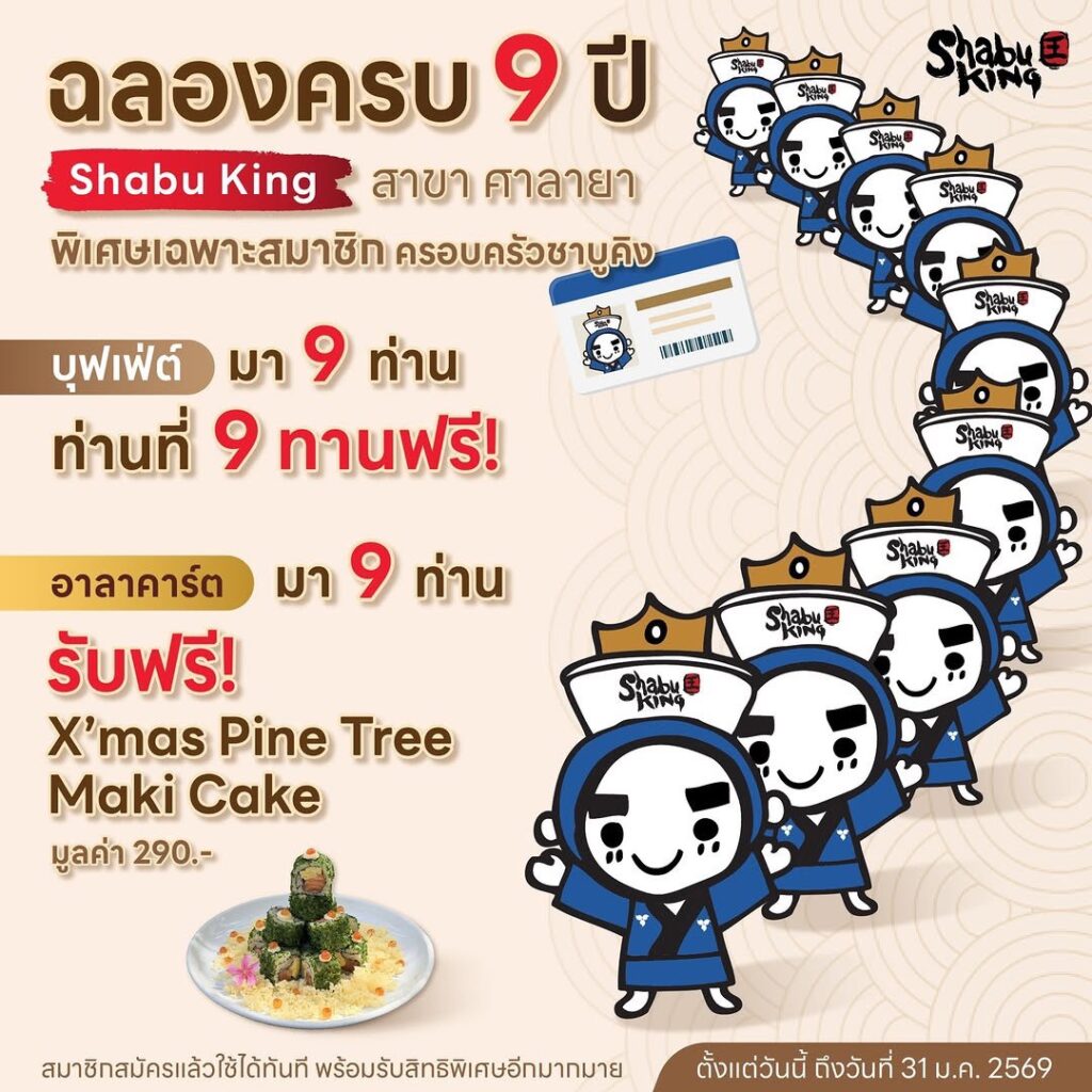 ร่วมฉลองความสุขครบรอบ 9 ปีไปกับครอบครัวชาบูคิงได้แล้ววันนี้ ที่ Shabu King สาขาศาลายา โทร. 02-441-9911, 06-1396-9784