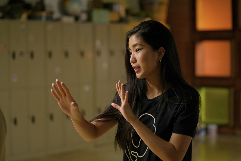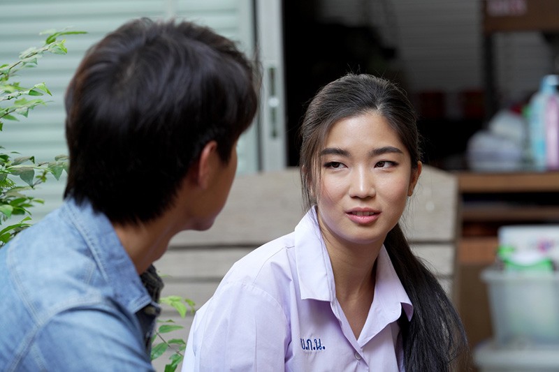 บางซีนที่ต้องมีความดราม่า ตัวก้อยเองเวลาเล่นอะไรแบบนี้ ต้องมีสมาธิสูง ซึ่งบิวกิ้นเขาก็จะคอยส่งให้ คือถ้าโหมดจริงจัง น้องสามารถจริงจังได้ แต่พอถึงซีนที่ไม่ค่อยยาก บิวกิ้นก็จะยืนแลบลิ้น ส่งซิกแนลให้เราอยู่ไกล ๆ ซึ่งทำให้เรารู้สึกว่า เด็กคนนี้มันยังไงนะ คือเอ็นดูเหมือนน้องชายเลยค่ะ สำหรับการทำงานกับพีพี คือรู้สึกสบายใจมาก ทุกครั้งที่เจอก็จะมีแซวกัน หยอกล้อกันตามประสา เราเคยทำเวิร์กช็อปให้น้อง พีพีเป็นคนที่จัดการตัวเองดีมาก ๆ อยู่แล้ว น้องถือเป็นนักแสดงที่มีความสามารถอีกคนหนึ่ง ส่วนการทำงานกับโอบ และ ณ ทุกคนคือมืออาชีพมาก รู้สึกแฮปปี้มากค่ะ สำหรับกองถ่ายนี้ สุดท้ายคืออยากให้ทุกคนติดตาม มาดูว่าตัวละครของเต๋และโอ้เอ๋ว จะมีการเติบโตไปแค่ไหน คิดว่าเนื้อเรื่องน่าจะโดนใจใครหลายคน เชื่อว่าทุกคนน่าจะชอบ ฝากติดตามและให้กำลังใจพวกเราด้วยนะคะ”