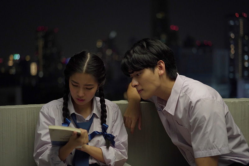 บางซีนที่ต้องมีความดราม่า ตัวก้อยเองเวลาเล่นอะไรแบบนี้ ต้องมีสมาธิสูง ซึ่งบิวกิ้นเขาก็จะคอยส่งให้ คือถ้าโหมดจริงจัง น้องสามารถจริงจังได้ แต่พอถึงซีนที่ไม่ค่อยยาก บิวกิ้นก็จะยืนแลบลิ้น ส่งซิกแนลให้เราอยู่ไกล ๆ ซึ่งทำให้เรารู้สึกว่า เด็กคนนี้มันยังไงนะ คือเอ็นดูเหมือนน้องชายเลยค่ะ สำหรับการทำงานกับพีพี คือรู้สึกสบายใจมาก ทุกครั้งที่เจอก็จะมีแซวกัน หยอกล้อกันตามประสา เราเคยทำเวิร์กช็อปให้น้อง พีพีเป็นคนที่จัดการตัวเองดีมาก ๆ อยู่แล้ว น้องถือเป็นนักแสดงที่มีความสามารถอีกคนหนึ่ง ส่วนการทำงานกับโอบ และ ณ ทุกคนคือมืออาชีพมาก รู้สึกแฮปปี้มากค่ะ สำหรับกองถ่ายนี้ สุดท้ายคืออยากให้ทุกคนติดตาม มาดูว่าตัวละครของเต๋และโอ้เอ๋ว จะมีการเติบโตไปแค่ไหน คิดว่าเนื้อเรื่องน่าจะโดนใจใครหลายคน เชื่อว่าทุกคนน่าจะชอบ ฝากติดตามและให้กำลังใจพวกเราด้วยนะคะ”