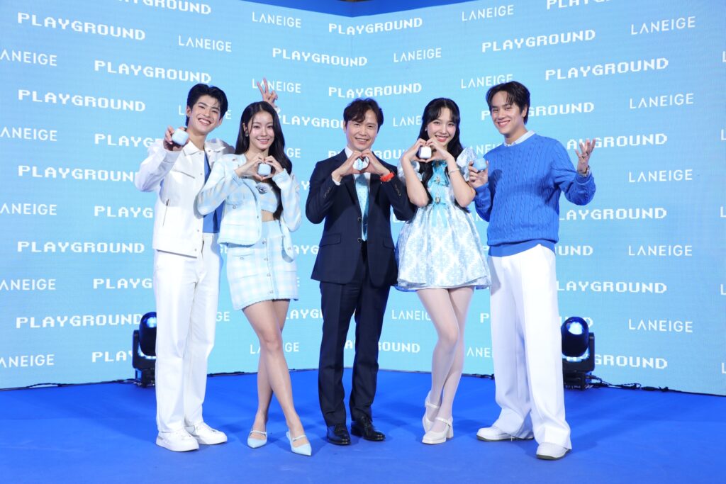 โดยบรรยากาศในงาน “Laneige Playground” เปิดตัวผลิตภัณฑ์ใหม่ ครีมบำรุงผิว Laneige Water Bank Blue Hyaluronic Cream ได้เนรมิตเอ็มสเฟียร์ แกลเลอรี่ ให้กลายเป็นพื้นที่แห่งความสนุกสนาน Laneige Playground ที่ได้มาทดลอง Water Bank Blue Hyaluronic Cream สูตรปรับปรุงใหม่ ช่วยเติมความชุ่มชื้นให้กับผิวทั้งหมด 3สูตร ตอบโจทย์ครอบคลุมทุกปัญหาสุขภาพผิวของคนรุ่นใหม่ ก่อนจะถึงช่วงไฮไลท์กับการแนะนำทีม Laneige Thailand Presenters นำโดย “นนน -กรภัทร์ เกิดพันธุ์” ศิลปินหนุ่มสุดฮอต ที่งานนี้มาโชว์มินิคอนเสิร์ตให้แฟนๆ แบรนด์ลาเนจได้เพลิดเพลินกัน จากนั้นตามมาด้วยเหล่าหนุ่มสาวไอดอล เป็นตัวแทนของวัยรุ่นที่มีความสุขและสนุกสนานกับการดูแลตัวเอง ได้แก่ “น้ำตาล-ทิพนารี วีรวัฒโนดม” ตัวแทนของหญิงสาวหวานที่ต้องการการดูแลผิวอย่างผิวผสม “แจน-พลอยชมพู ศุภทรัพย์” ตัวแทนของหญิงสาวที่ต้องการการปรนบัติผิวอย่างอ่อนโอน และ “มาร์ค-ภาคิน คุณาอนุวิทย์”ชายหนุ่มผู้ที่ต้องการการดูแลปกป้องจากปัญหารอยแดง