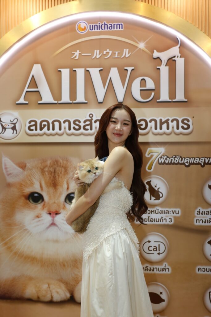 เพราะการมุ่งมั่นให้ “สังคมแห่งการอยู่ร่วมกัน” เกิดขึ้นเป็นจริง บริษัท ยูนิ.ชาร์ม (ประเทศไทย) จำกัด ผู้ผลิตสินค้าคุณภาพสำหรับผู้บริโภคที่ได้รับการยอมรับมาโดยตลอด ทั้งผลิตภัณฑ์ผ้าอ้อมเด็กมามี่โพโค (MamyPoko), ผ้าอนามัย (Sofy), ผ้าอ้อมผู้ใหญ่ (Lifree) และผลิตภัณฑ์สำหรับสัตว์เลี้ยง (Unicharm Pet) ได้มุ่งมั่นและไม่หยุดยั้งในการพัฒนานวัตกรรมใหม่ๆ เพื่อส่งมอบผลิตภัณฑ์ที่มีคุณภาพให้แก่ผู้บริโภคคนไทย ล่าสุด!! ได้จัดงานแถลงข่าวเปิดตัวผลิตภัณฑ์ใหม่สำหรับดูแลสัตว์เลี้ยง ในชื่อ “ออลเวลล์” (AllWell) ครั้งแรกกับนวัตกรรมอาหารเม็ดแมวช่วยลดอาการสำรอก ด้วยไฟเบอร์ชนิดพิเศษ “ลิกโนเซลลูโลส” (Lignocellulose) ที่ได้รับการจดสิทธิบัตรในญี่ปุ่น ทำให้เม็ดอาหารแตกตัวและย่อยสลายอย่างรวดเร็ว เพื่อแมวที่คุณรักจะได้มีสุขภาพที่ดีไปนานๆ พร้อมกันนี้ ในงานยังได้เปิดตัว ต้าเหนิง – กัญญาวีร์ สองเมือง ในฐานะ พรีเซนเตอร์ “ออลเวลล์” (AllWell) ซึ่งงานนี้ดาราสาวคนสวยได้แชร์ประสบการณ์การเลี้ยงแมว รวมทั้งเล่าถึงการสำรอกของแมวว่าสามารถเกิดจากอาหารได้ด้วย ณ ศูนย์การประชุมแห่งชาติสิริกิติ์