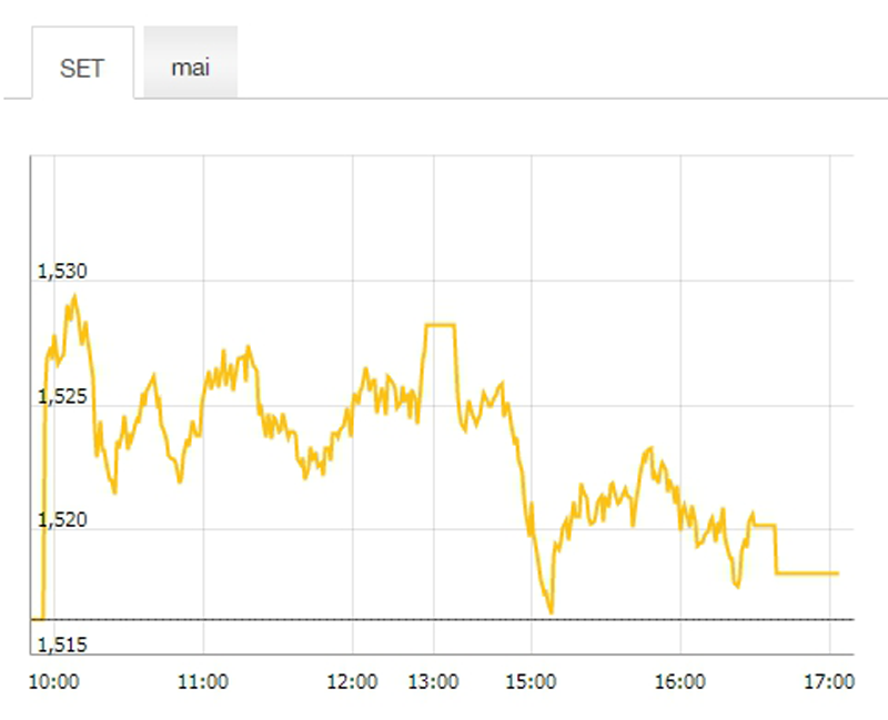 สำหรับการซื้อขายในตลาดหลักทรัพย์ ตลอดทั้งวันที่ผ่านมา ปิดตลาดเพิ่มขึ้น 1.84 จุด แตะ 1,518.27 จุด มูลค่า 92,889.81 ล้านบาท ขณะแลกเปลี่ยนขาย 29.85 บาท