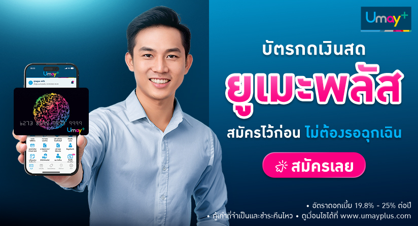 *อนุมัติไม่เกิน 5 เท่าของรายได้ ขึ้นอยู่กับการพิจารณาของบริษัท, อัตราดอกเบี้ย 19.8% – 25% ต่อปี, กู้เท่าที่จำเป็นและชำระคืนไหว, ดูเงื่อนไขได้ที่เว็บไซต์ยูเมะพลัส
