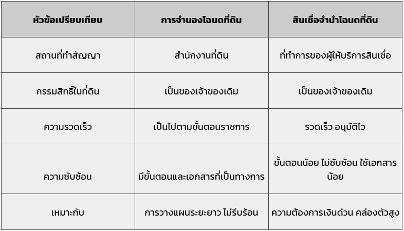 เปรียบเทียบจำนองโฉนดที่ดิน VS สินเชื่อจำนำโฉนดที่ดิน
