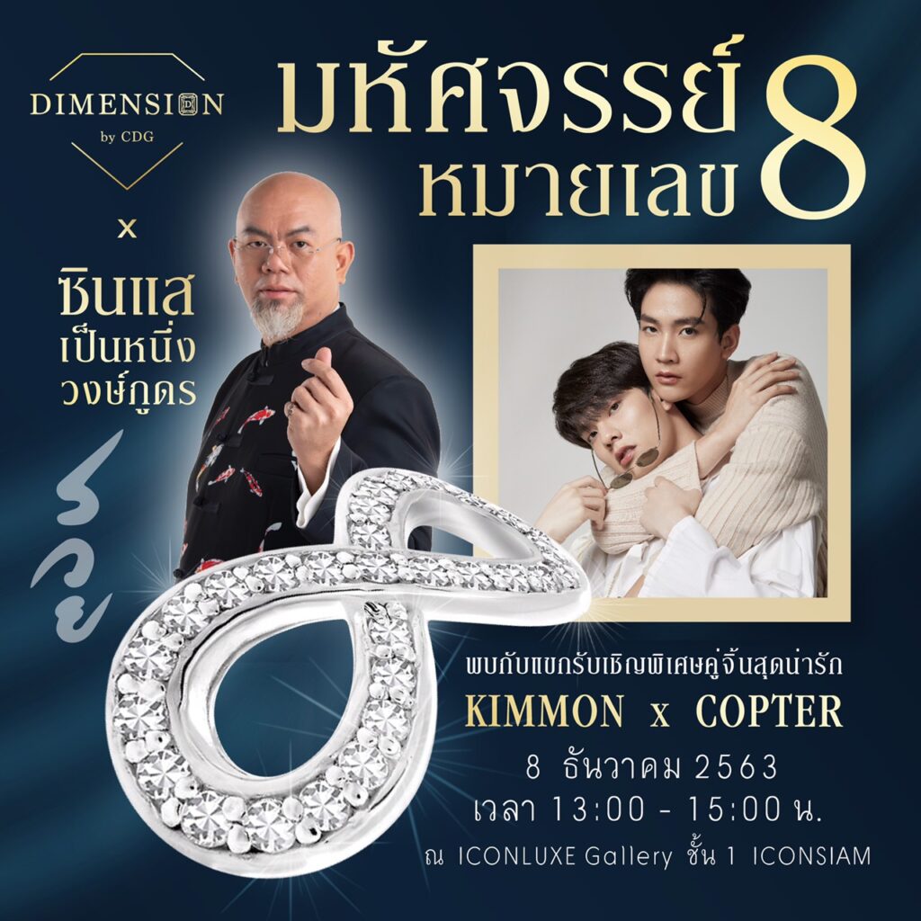 พบกับการเปิดตัวคอลเลคชั่นมหัศจรรย์หมายเลข 8 สุดพิเศษนี้และพบกับแฟชั่นโชว์จากเซเลบริตี้โดยเครื่องประดับคอลเลคชั่นมหัศจรรย์หมายเลข 8 จาก Dimension by CDG และ เสื้อผ้าจากแบรนด์ Torr Boutique ของคุณต่อ ดร.วิราวรรณ ศรีสมบูรณานนท์ และ ฟินาเล่สุดปังจากขวัญใจสายวายสุดว้าว คิมม่อน-วโรดม เข็มมณฑา และ คอปเตอร์-ภานุวัฒน์ เกิดทองทวี จากซีรี่ย์ “วัยรุ่นวุ่นYรัก”