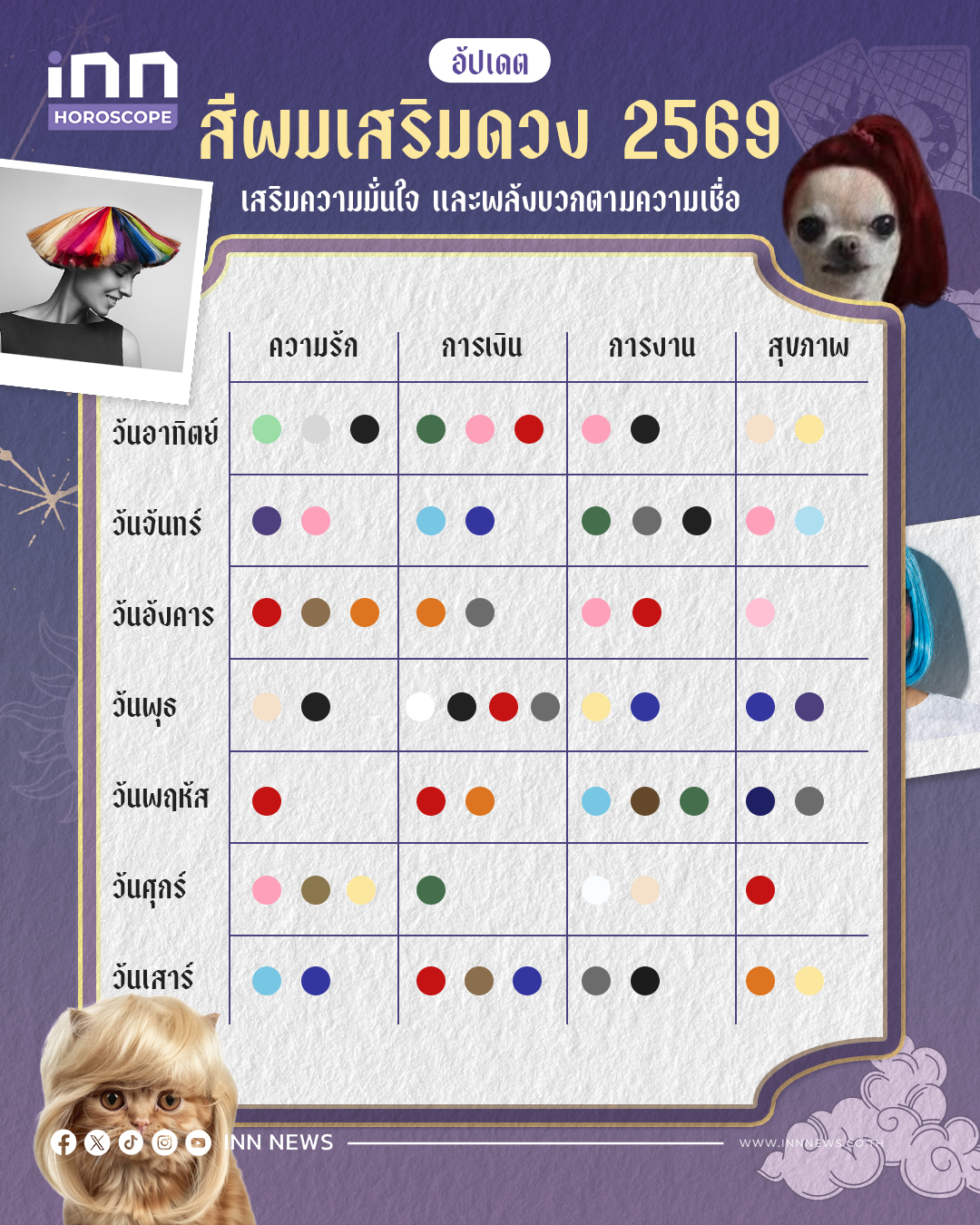 การทำสีผมเสริมดวง เป็นอีกหนึ่งทางเลือกสำหรับคนที่อยากเริ่มต้นสิ่งใหม่ ๆ พร้อมเสริมความมั่นใจในปี 2569 แม้เรื่องสีผมเสริมดวงจะเป็นความเชื่อส่วนบุคคล แต่หากเลือกสีที่ถูกใจและเหมาะกับตัวเอง ก็สามารถช่วยเพิ่มพลังบวก และทำให้รู้สึกมั่นใจมากขึ้นในทุกวัน