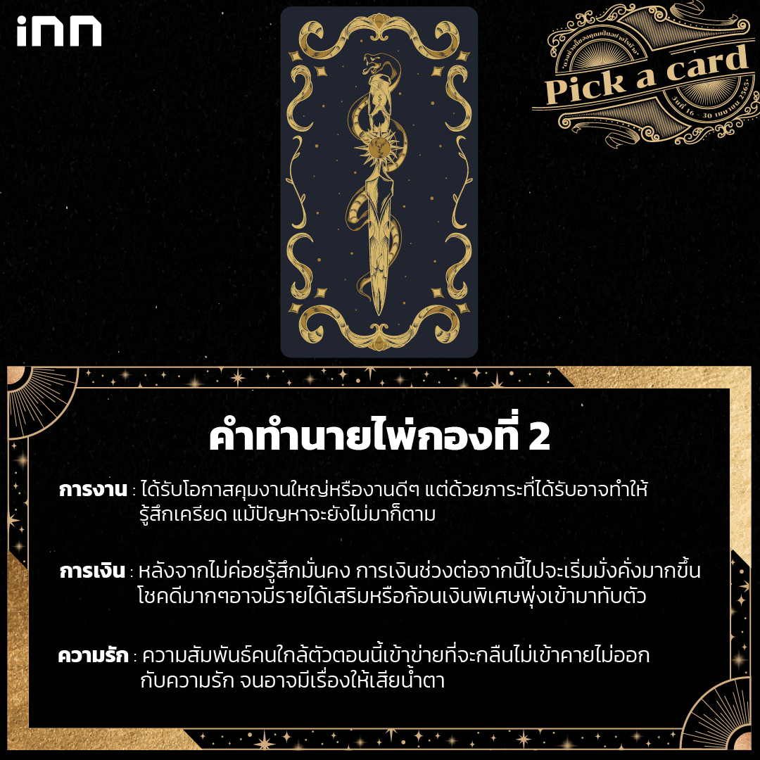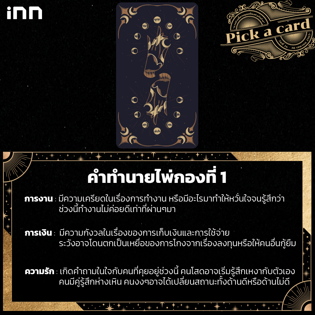ไม่ว่าจะหยิบหรือเลือกกองไหน สำคัญที่สุดคือเตือนตัวเอง มีสติกับการใช้ชีวิต เพื่อที่จะผ่านเรื่องราวต่างๆ ในช่วงนี้ ถ้าใครที่มีความชอบในการอ่านดวง อยากเสริมดวง เสริมโชคลาภในรูปแบบอื่นๆ สามารถติดตามได้ที่นี่ iNN Horoscope