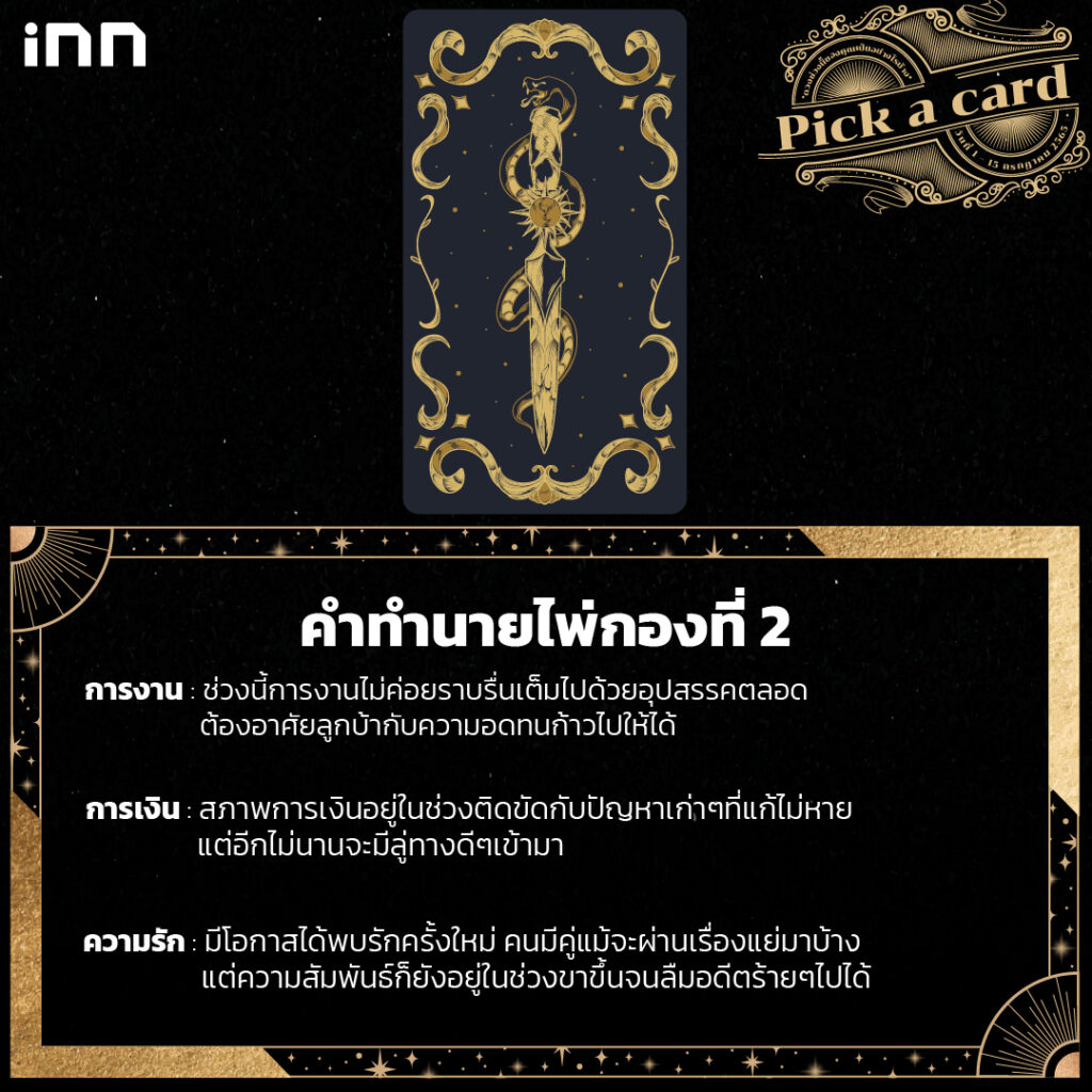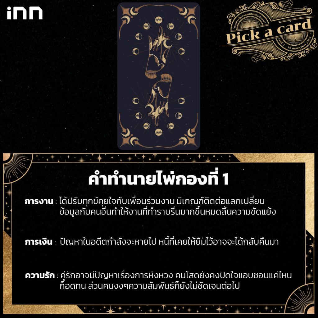 ไม่ว่าจะหยิบหรือเลือกกองไหน สำคัญที่สุดคือเตือนตัวเอง มีสติกับการใช้ชีวิต เพื่อที่จะผ่านเรื่องราวต่างๆ ในช่วงนี้ ถ้าใครที่มีความชอบในการอ่านดวง อยากเสริมดวง เสริมโชคลาภในรูปแบบอื่นๆ สามารถติดตามได้ที่นี่ iNN Horoscope