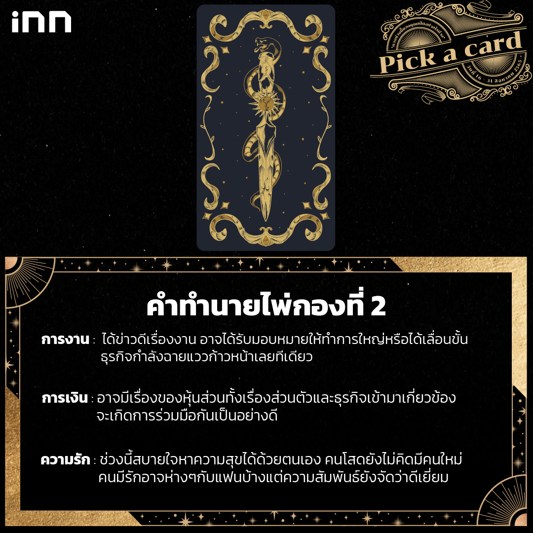 ไม่ว่าจะหยิบหรือเลือกกองไหน สำคัญที่สุดคือเตือนตัวเอง มีสติกับการใช้ชีวิต เพื่อที่จะผ่านเรื่องราวต่างๆ ในช่วงนี้ ถ้าใครที่มีความชอบในการอ่านดวง อยากเสริมดวง เสริมโชคลาภในรูปแบบอื่นๆ สามารถติดตามได้ที่นี่ iNN Horoscope