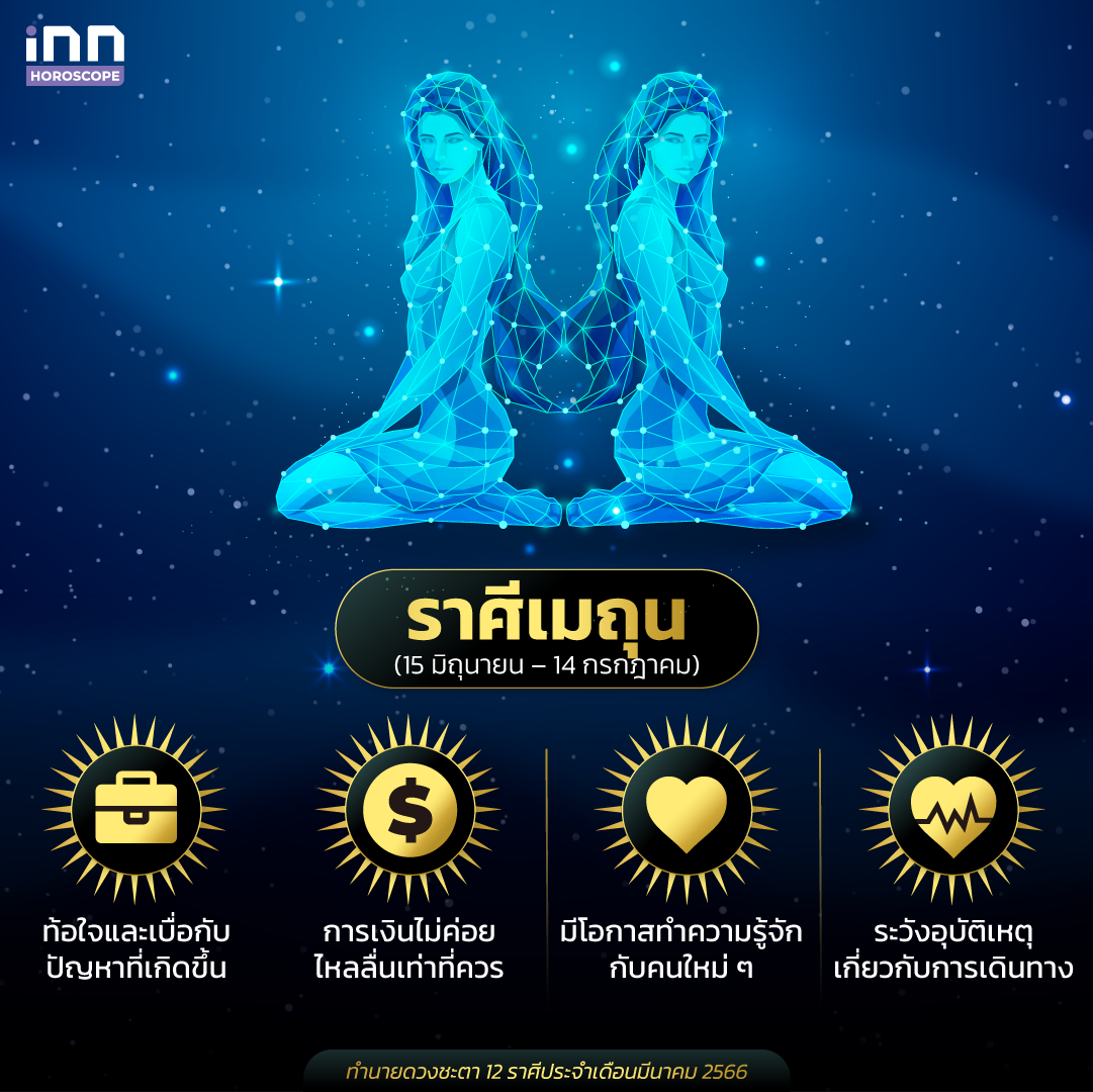 ดวงการงานของชาวราศีเมถุนในเดือนนี้ค่อนข้างท้อใจและมีความเบื่อกับปัญหาที่เกิดขึ้น จะหวังไปพึ่งใครหรือไปขอความช่วยเหลือใครมักจะไม่สมหวัง ต้องดิ้นรนต่อสู้แบบตัวคนเดียวอยู่ตลอด พยายามอย่าไปมีปากเสียงกับใคร เพราะจะทำให้สถานการณ์แย่ขึ้นกว่าเดิม