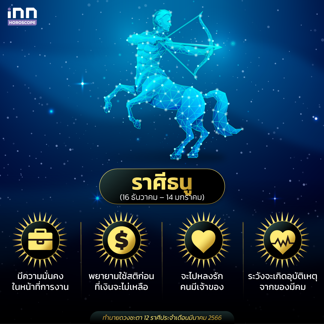 ดวงการงานของชาวราศีธนูในเดือนนี้คุณมีเกณฑ์ที่จะได้รับการเลื่อนขั้นเลื่อนตำแหน่ง หรือได้รับผิดชอบงานที่สำคัญที่สามารถต่อยอดความมั่นคงในหน้าที่การงานของคุณได้ ถ้ามีใครพูดอะไรถึงคุณที่ไม่ดีหรือมีการพูดดิสเครดิต อย่าไปใส่ใจ อยู่เฉยๆแล้วจะดีเอง