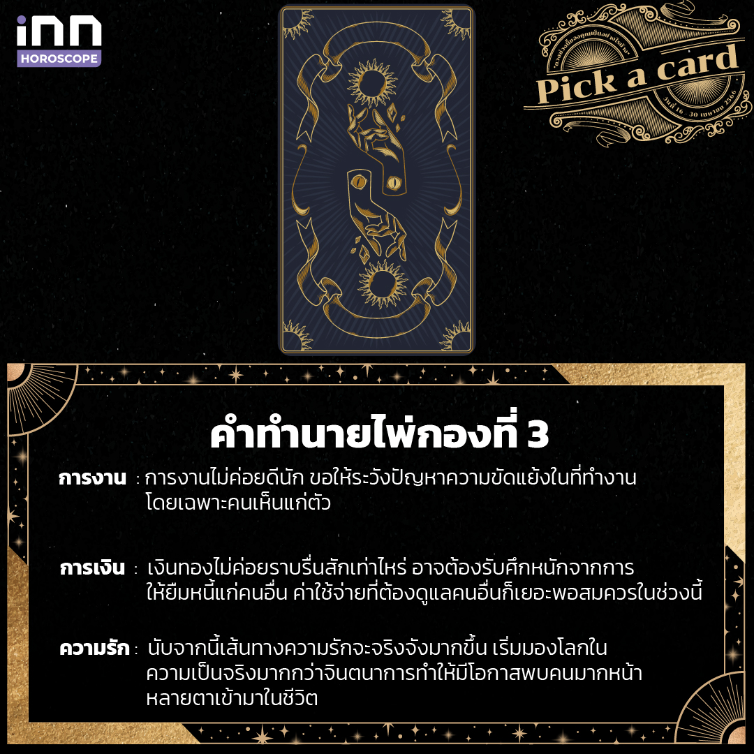 ไม่ว่าจะหยิบหรือเลือกกองไหน สำคัญที่สุดคือเตือนตัวเอง มีสติกับการใช้ชีวิต เพื่อที่จะผ่านเรื่องราวต่างๆ ในช่วงนี้ ถ้าใครที่มีความชอบในการอ่านดวง อยากเสริมดวง เสริมโชคลาภในรูปแบบอื่นๆ สามารถติดตามได้ที่นี่ iNN Horoscope
