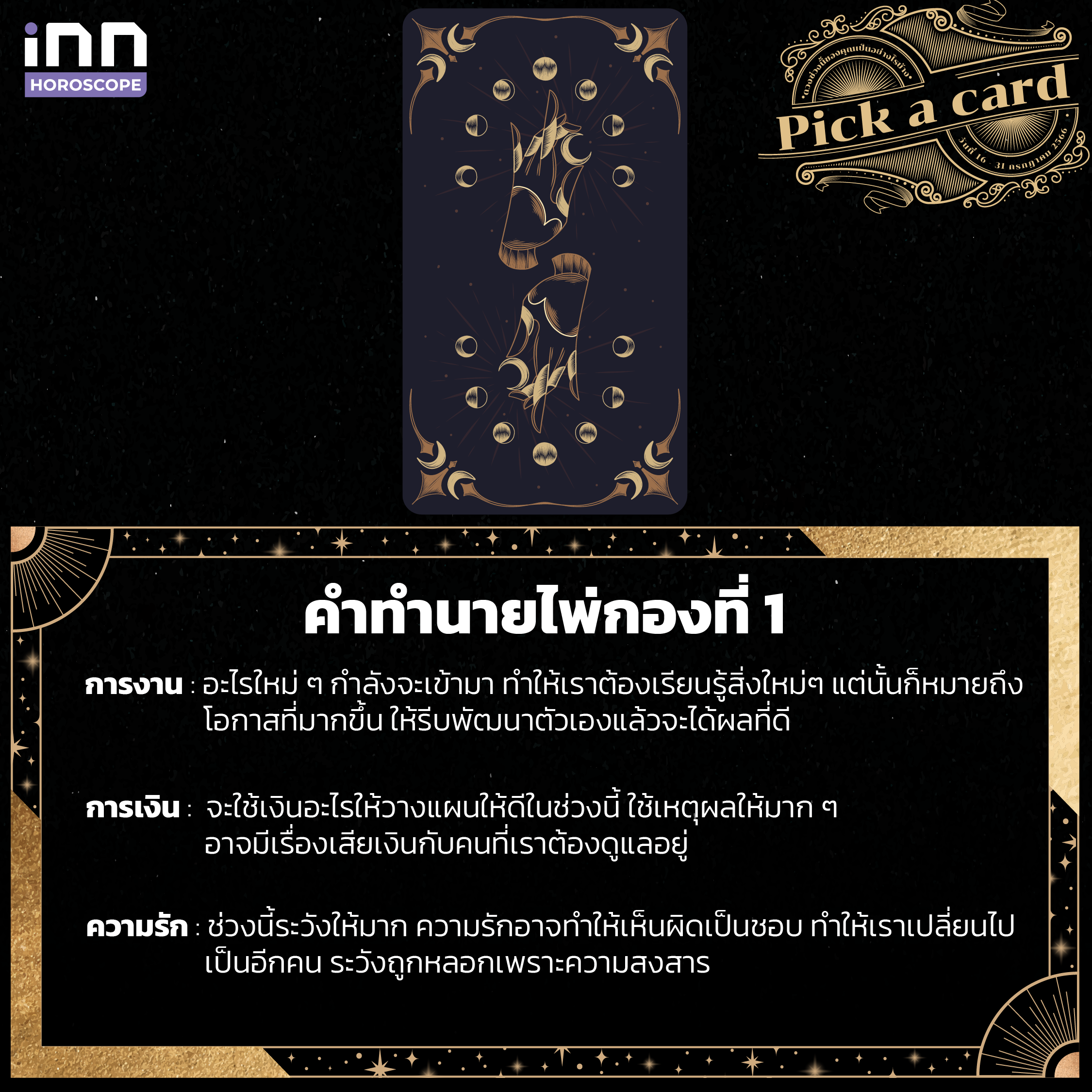 ไม่ว่าจะหยิบหรือเลือกกองไหน สำคัญที่สุดคือเตือนตัวเอง มีสติกับการใช้ชีวิต เพื่อที่จะผ่านเรื่องราวต่างๆ ในช่วงนี้ ถ้าใครที่มีความชอบในการอ่านดวง อยากเสริมดวง เสริมโชคลาภในรูปแบบอื่นๆ สามารถติดตามได้ที่นี่ iNN Horoscope