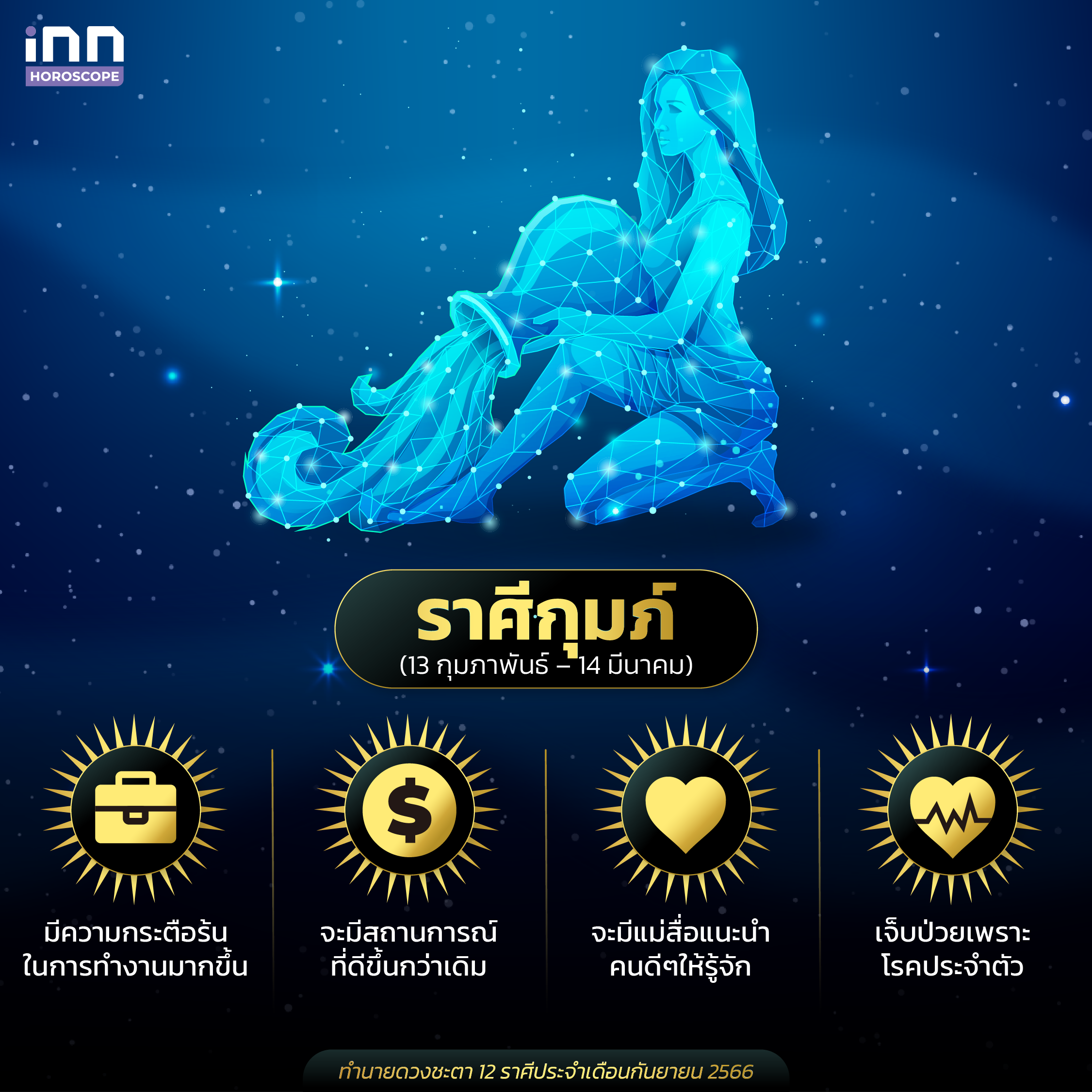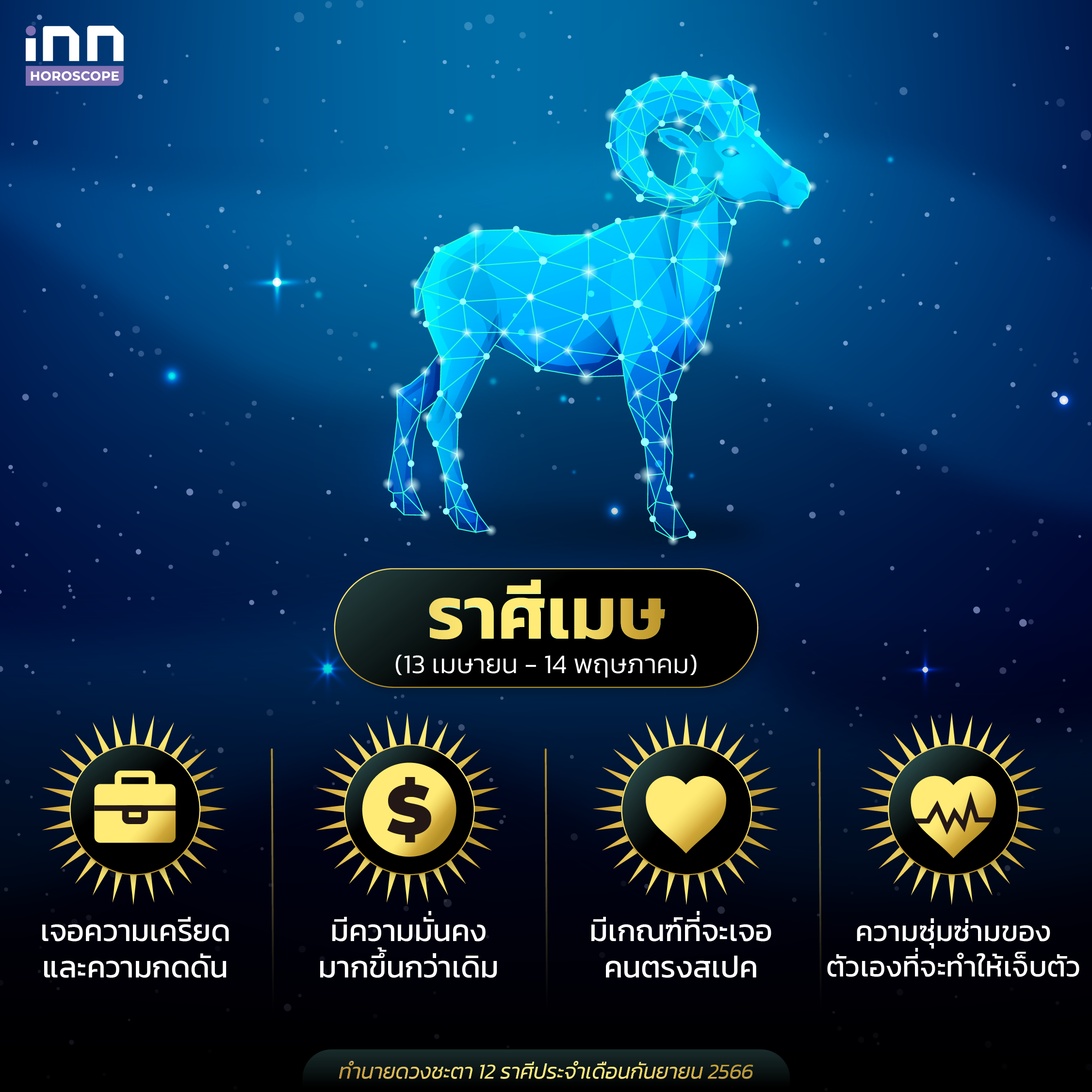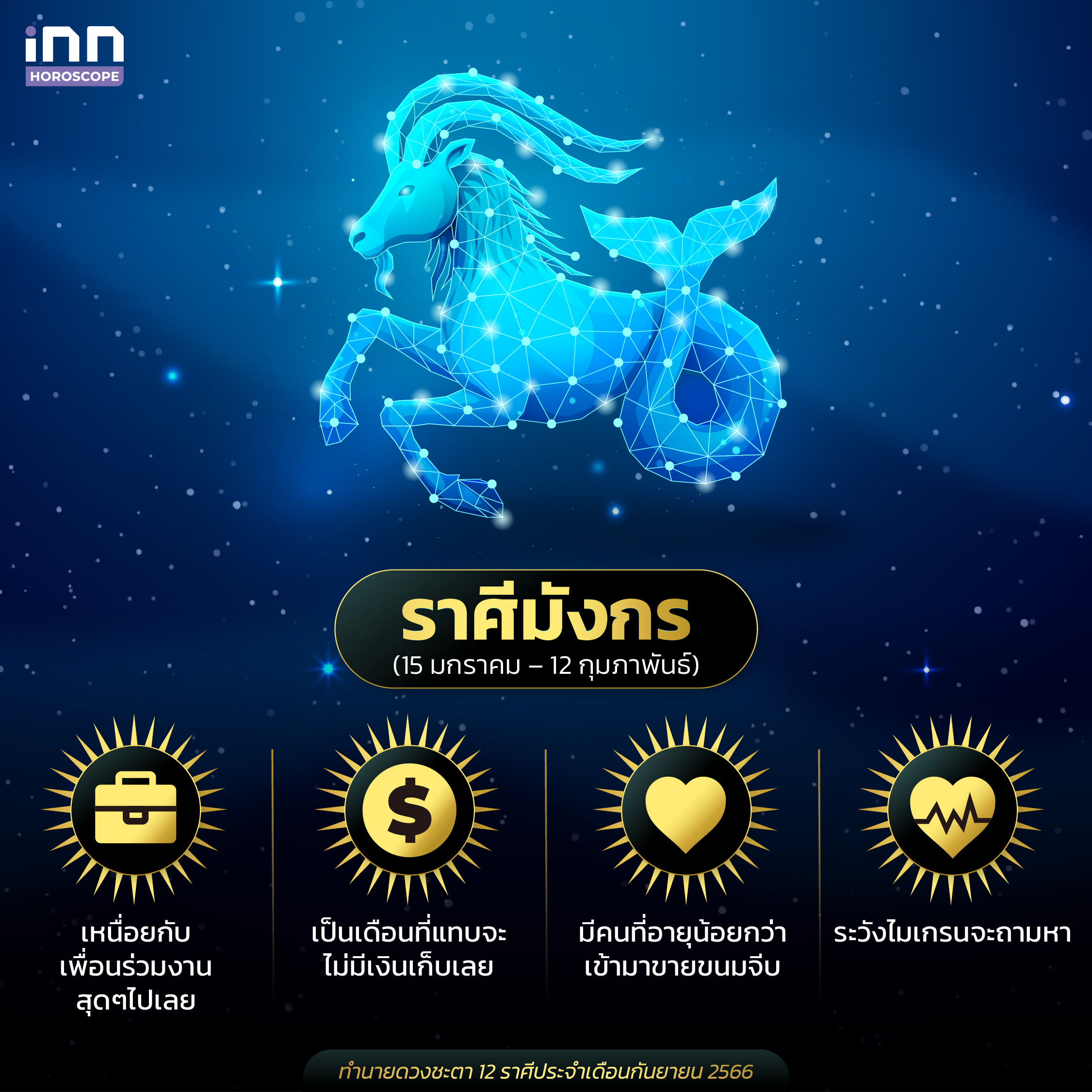 และนี่ก็คือการทำนายดวงชะตาทั้ง 12 ราศีประจำเดือนกันยายน 2566 ที่ทางทีม iNN ได้นำมาฝากกัน สำหรับใครที่มีความสนใจในเรื่องดวง เคล็ดลับเสริมดวงต่างๆ ทุกคนสามารถติดตาม iNN Horoscope ไว้ได้เลย