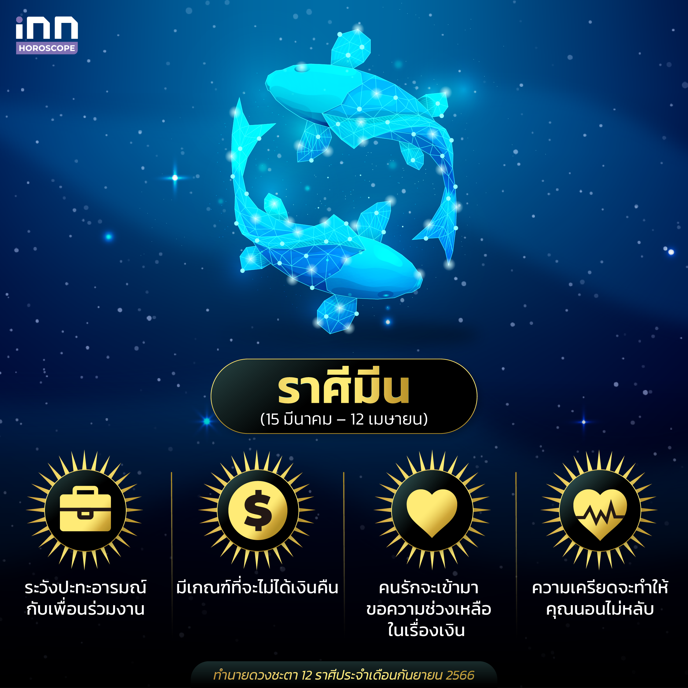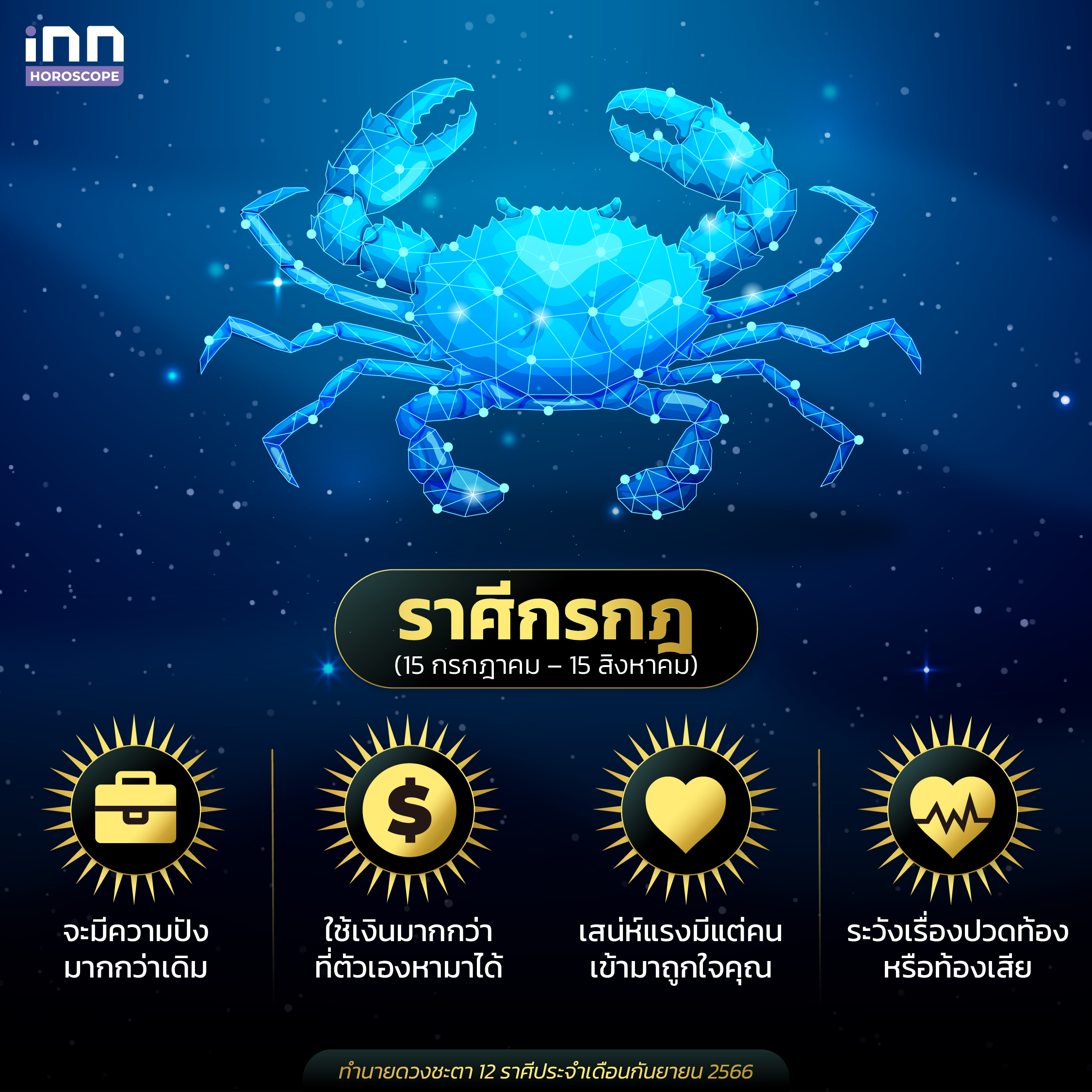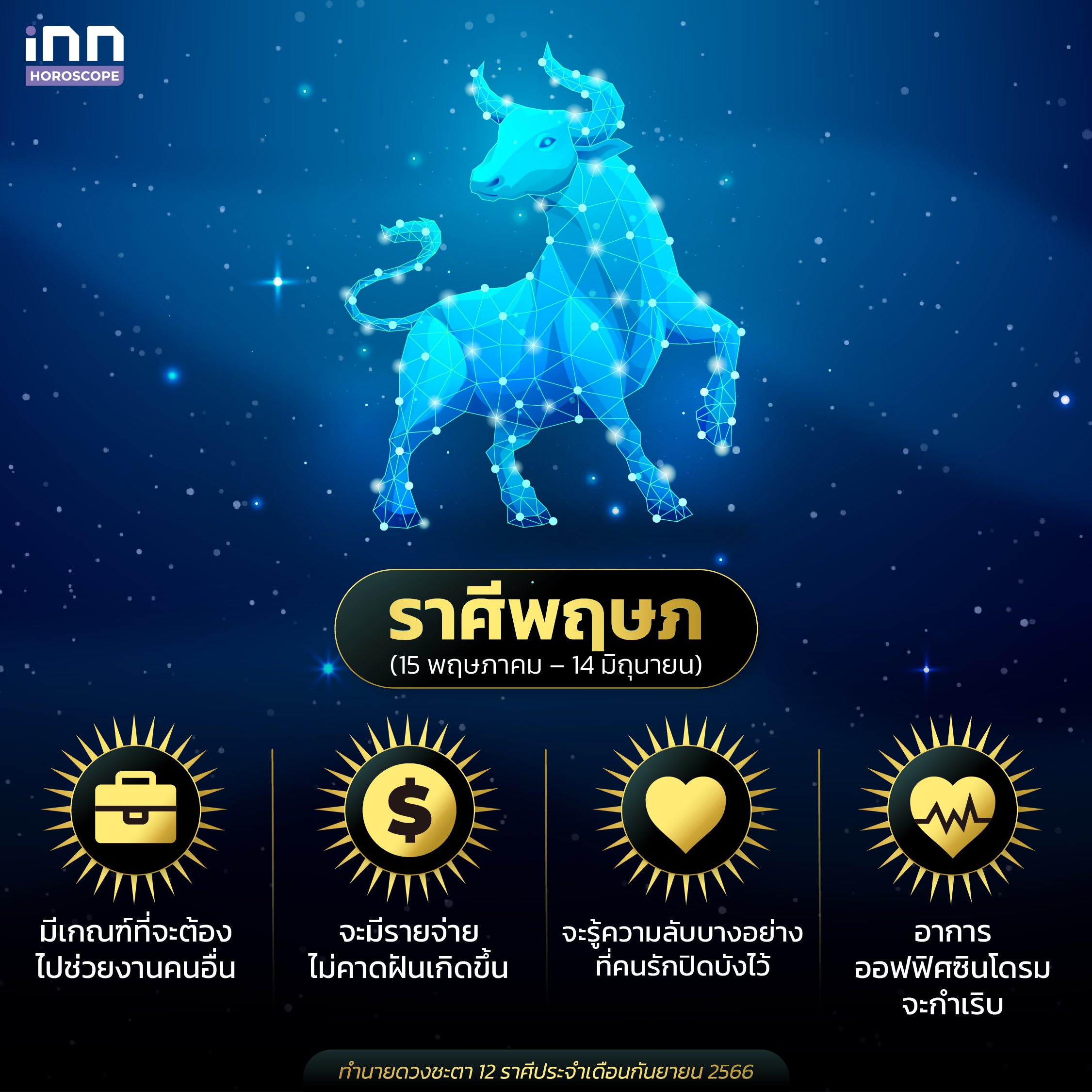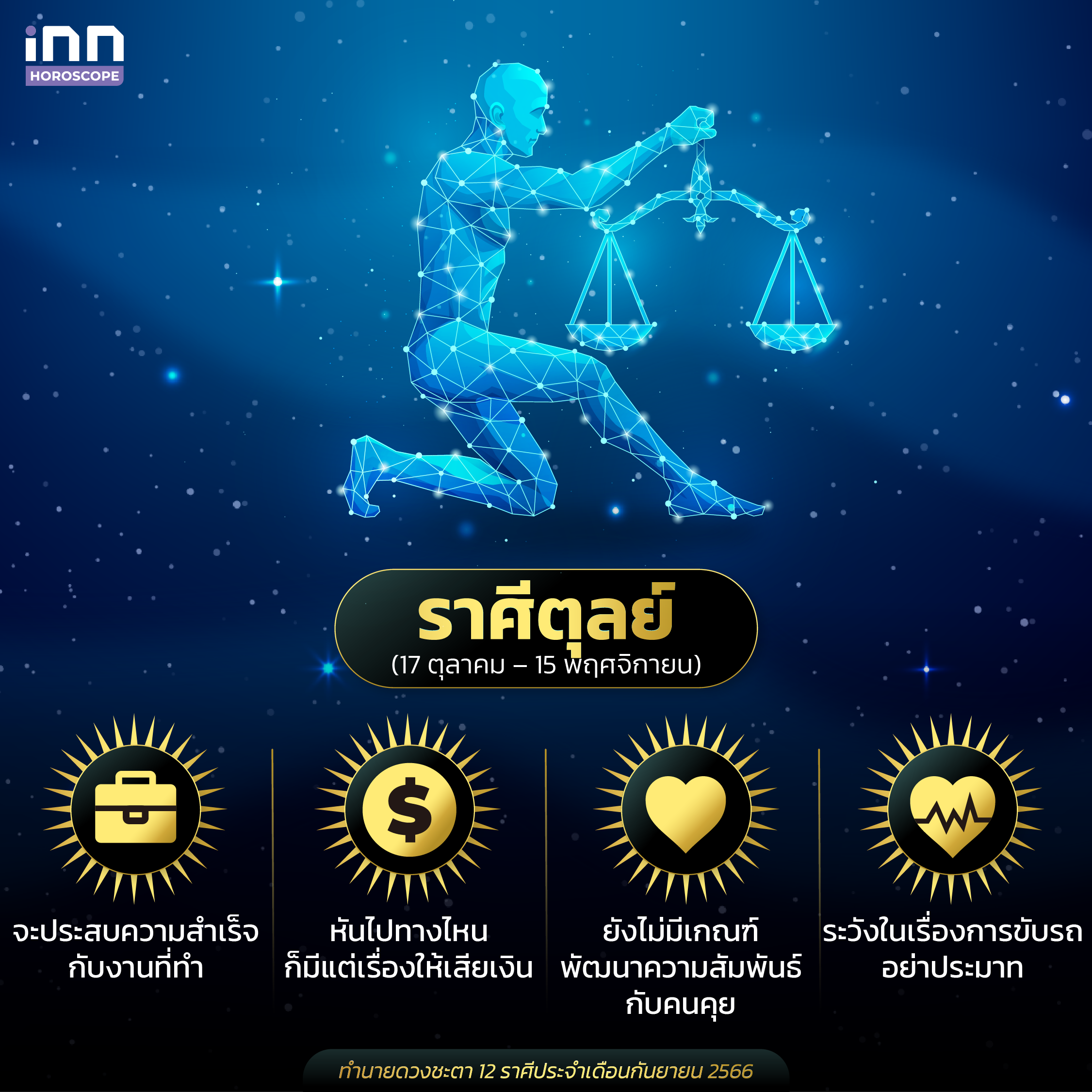 และนี่ก็คือการทำนายดวงชะตาทั้ง 12 ราศีประจำเดือนกันยายน 2566 ที่ทางทีม iNN ได้นำมาฝากกัน สำหรับใครที่มีความสนใจในเรื่องดวง เคล็ดลับเสริมดวงต่างๆ ทุกคนสามารถติดตาม iNN Horoscope ไว้ได้เลย