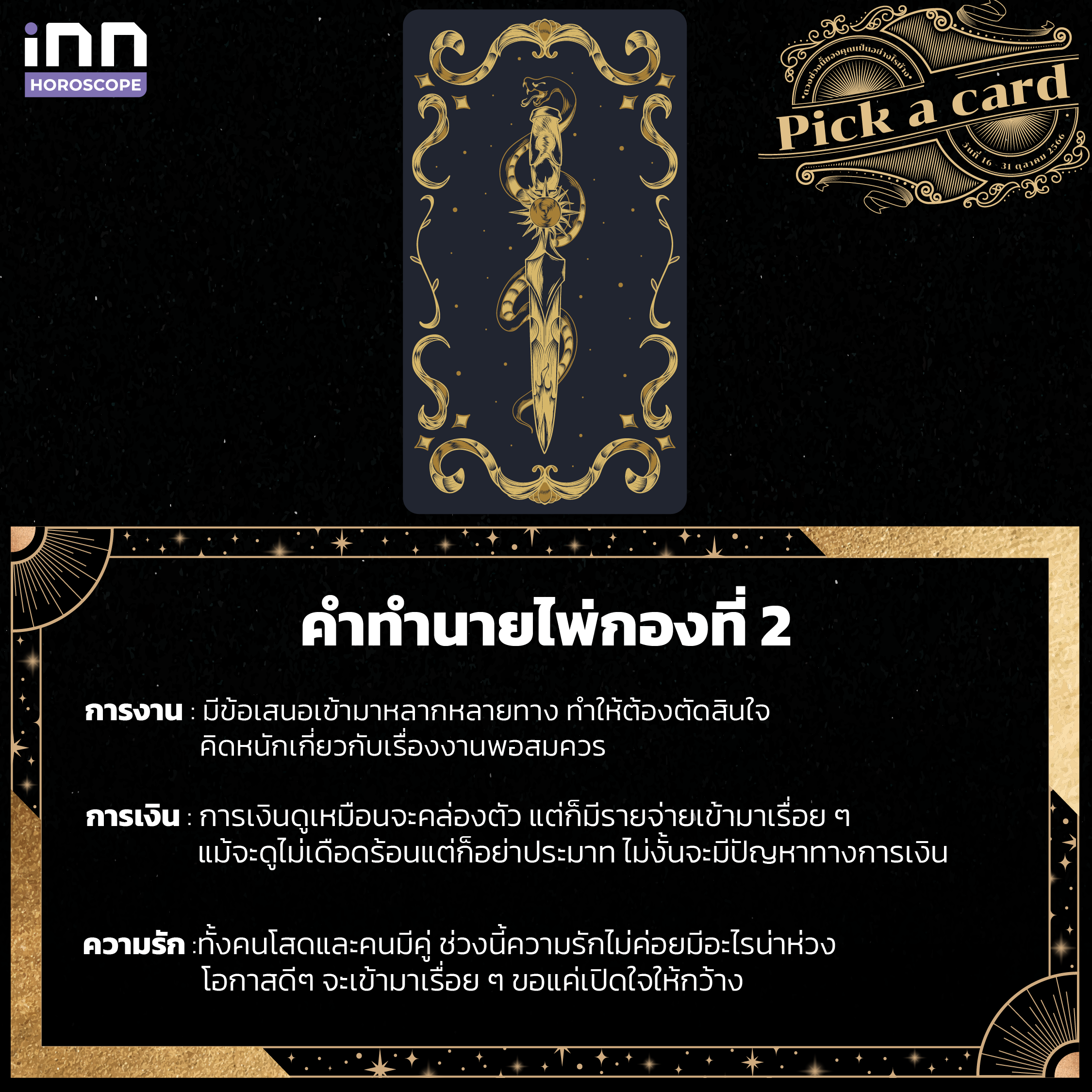 การงาน : มีข้อเสนอเข้ามาหลากหลายทาง ทำให้ต้องตัดสินใจ คิดหนักเกี่ยวกับเรื่องงานพอสมควร