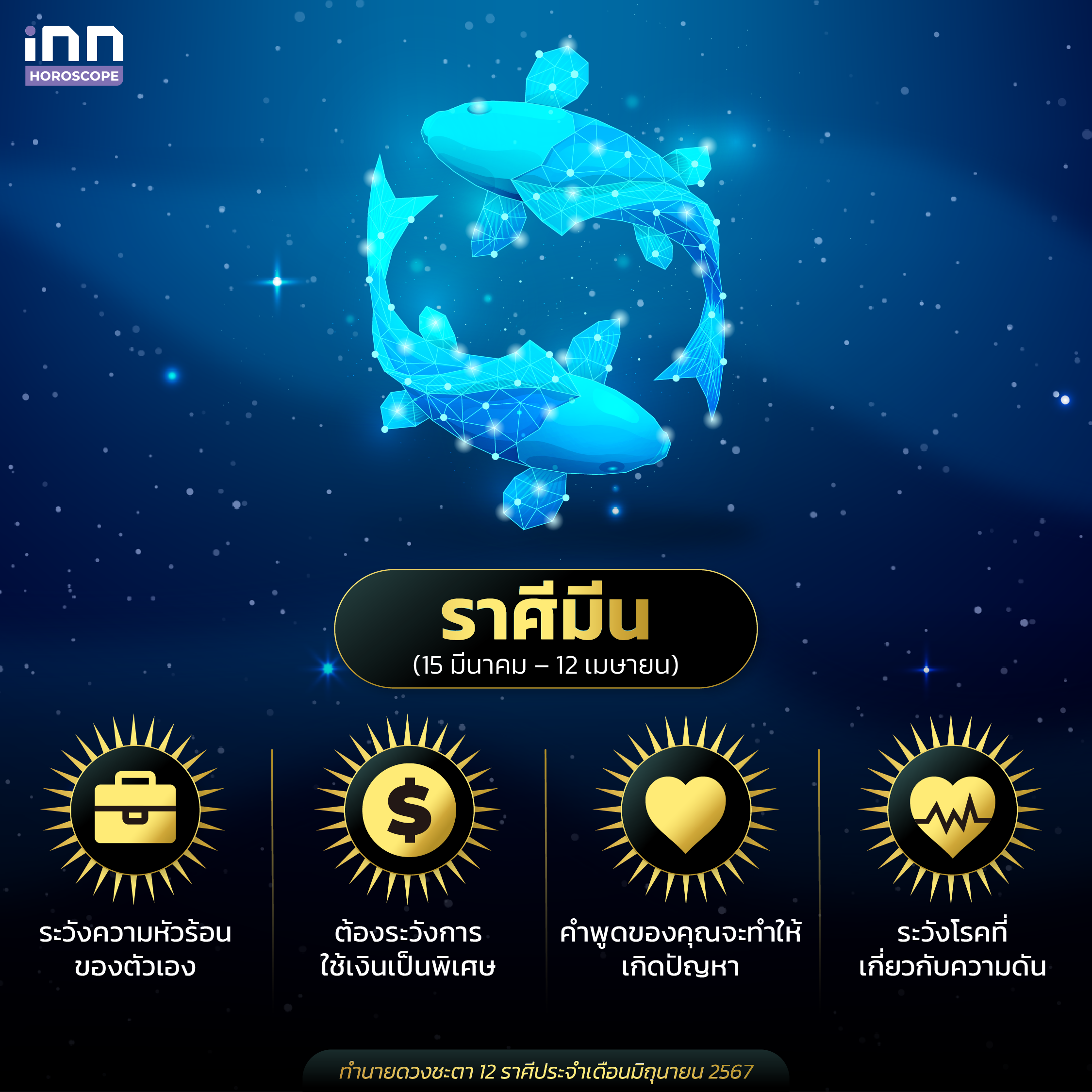 และนี่ก็คือการทำนายดวงชะตาทั้ง 12 ราศีประจำเดือนมิถุนายน 2567 ที่ทางทีม iNN ได้นำมาฝากกัน สำหรับใครที่มีความสนใจในเรื่องดวง เคล็ดลับเสริมดวงต่างๆ ทุกคนสามารถติดตาม iNN Horoscope ไว้ได้เลย