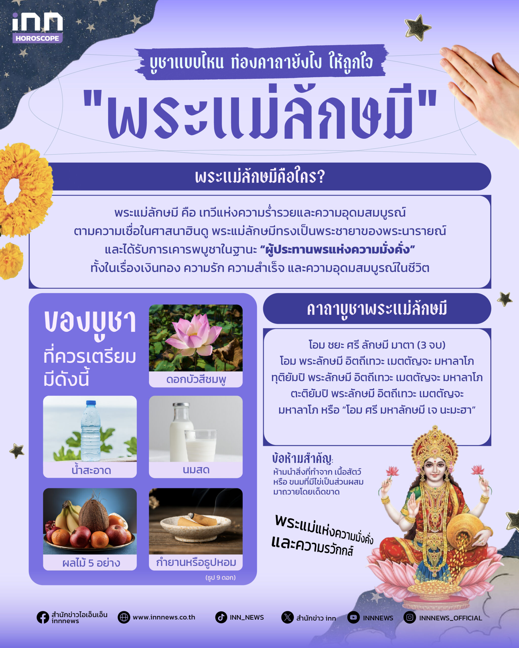 สำหรับใครที่กำลังรู้สึกว่า “ชีวิตติดขัด เงินทองรั่วไหล ความรักไม่สมหวัง” ลองหยุดพัก แล้วเปิดใจให้พลังแห่งศรัทธาได้เยียวยาจิตใจบ้าง วันนี้เราขอชวนคุณมารู้จักกับ “พระแม่ลักษมี” เทพแห่งความมั่งคั่ง ความรัก และความอุดมสมบูรณ์ พร้อมเผยเคล็ดลับมูเตลู ทั้งบทสวด ของไหว้ วันมงคล และวิธีขอพรยังไงให้ได้ผลทันใจ