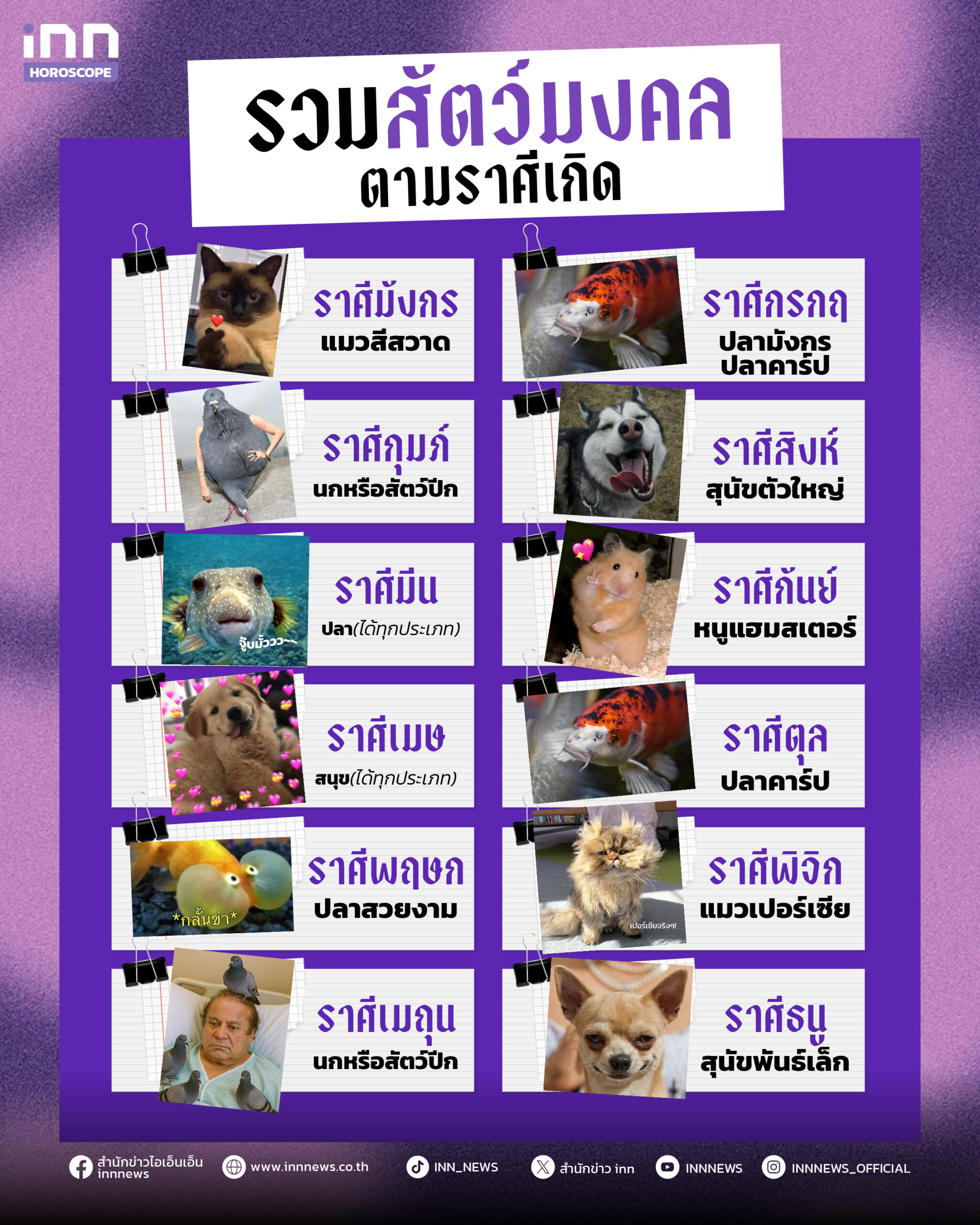 รวมสัตว์มงคลตามราศีเกิด สายมูห้ามพลาด
