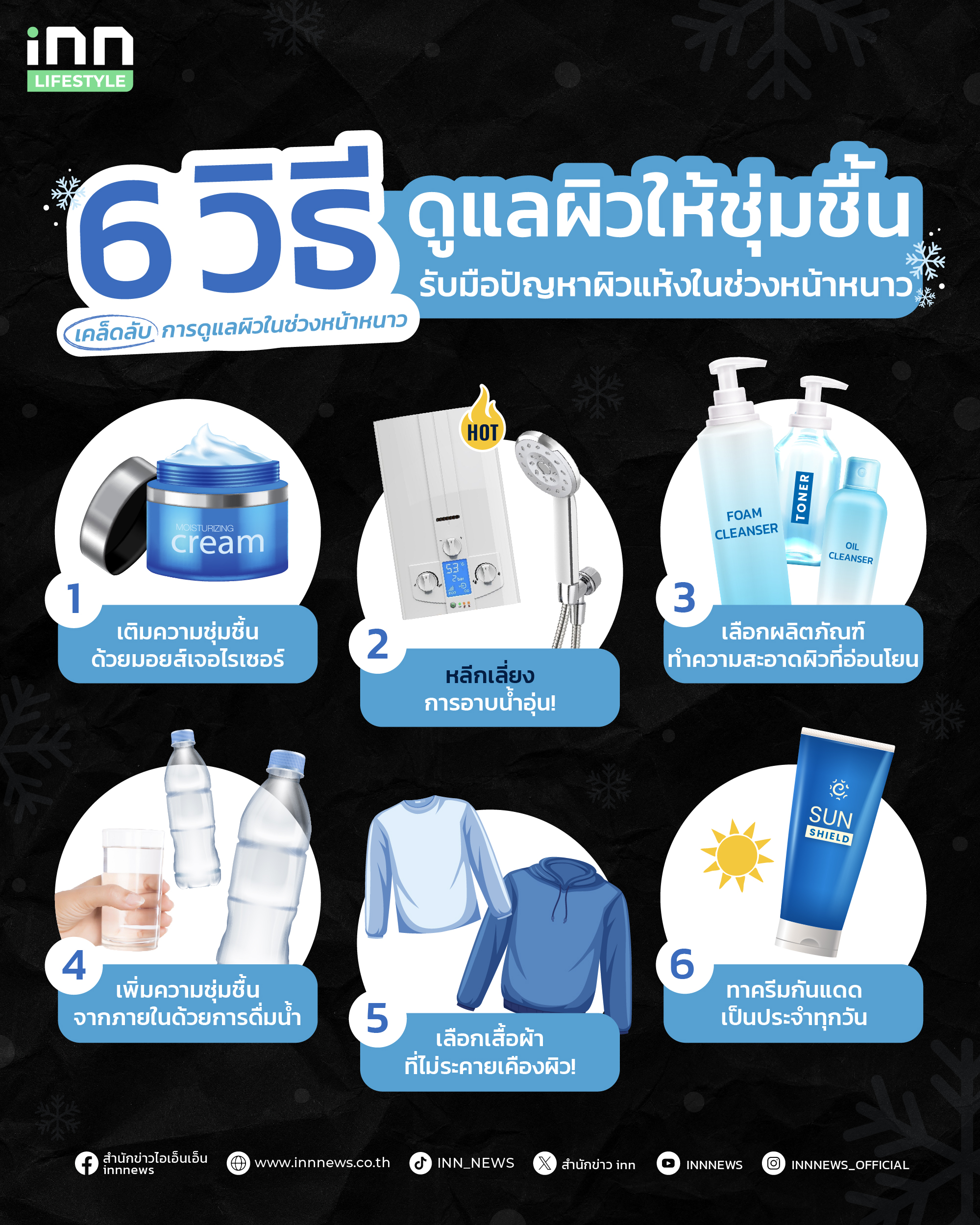 6 วิธีดูแลผิวให้นุ่มชุ่มชื้น รับมือปัญหาผิวแห้งในช่วงหน้าหนาว