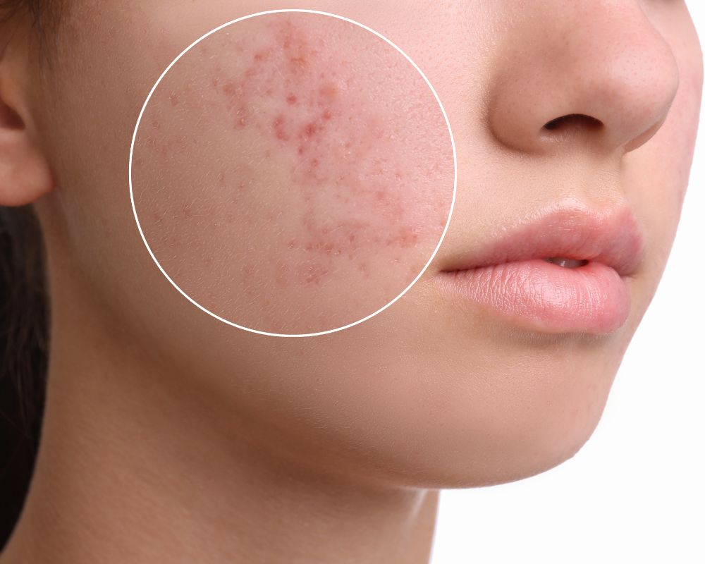 สาเหตุหลัก: การแพ้เครื่องสำอาง สกินแคร์ หรือแรงเสียดสีจากสิ่งต่าง ๆ ที่สัมผัสผิวหน้า