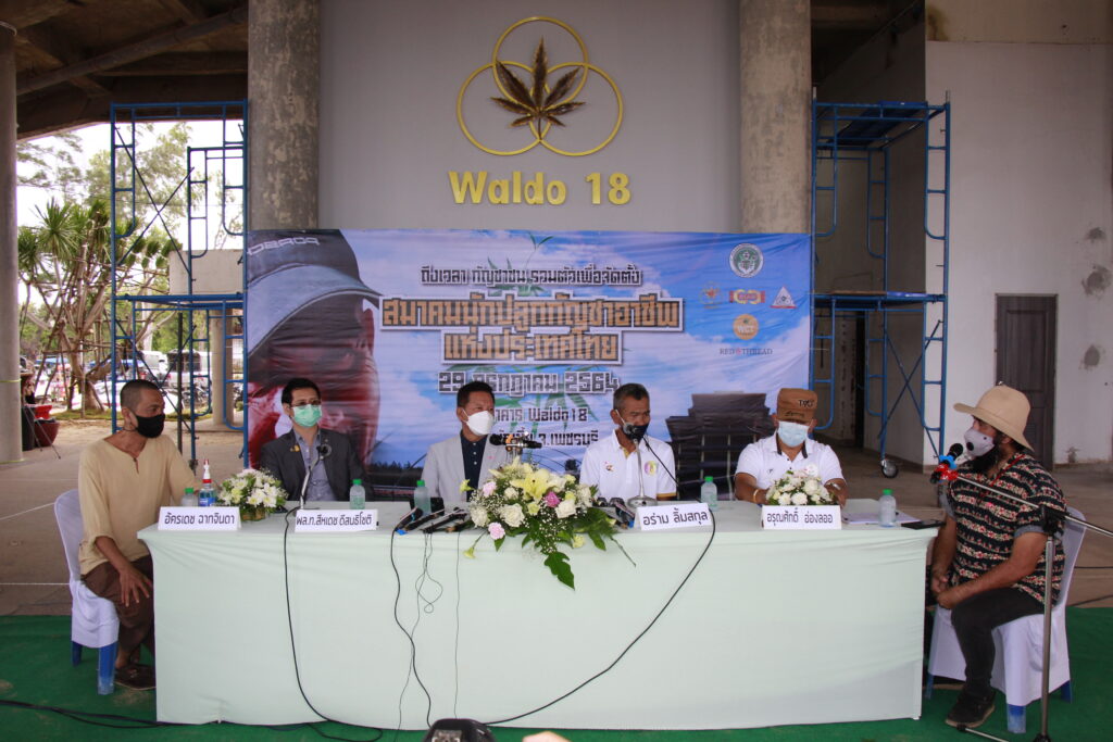 ลุงดำ Mr.KD “โกดำ” นายอร่าม ลิ้มสกุล นักปลูก นักค้นคว้าพัฒนาสายพันธ์กัญชา ทั้งแบบบ้านๆ และแบบใหม่ มานานกว่าสามสิบปี พลโทสีหเดช ดีสนธิโชติ อดีตรองผู้ว่าราชการจังหวัดเพชรบุรีฝ่ายความมั่นคง คุณอัครเดช ฉากจินดา NGO นักเคลื่อนไหว จากกลุ่มเขียนอนาคตกัญชาไทย จังหวัดกระบี่ ดร.โสภณ เอสบิวโดอิน นักวิชาการและผู้คิดค้น นวัตกรรมระบบไฟปลูกกัญชา นายอรุณศักดิ์ อ่องลออ ศิลปินนักคิดนักเขียน ผู้กำกับภาพยนตร์ ผู้ประสานงานสมาคมฯ ร่วมกันแถลงข่าวการจัดตั้งสมาคมนักปลูกกัญชาอาชีพแห่งประเทศไทย ณ อาคารWALDO 18แหลมผักเบี้ย จังหวัดเพชรบุรี วันนี้