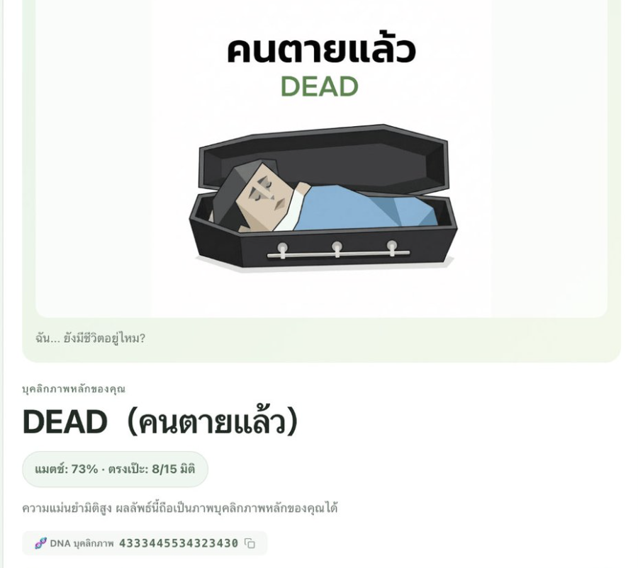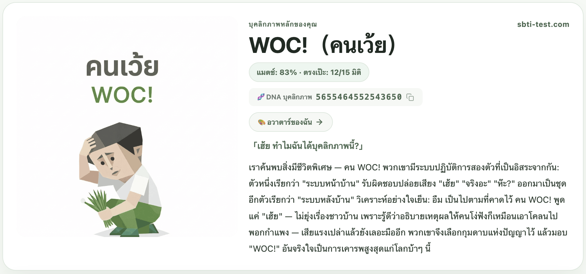 4. กดประมวลผลลัพธ์ เท่านี้ก็รู้แล้วว่า เรามี SBTI แบบไหน มาแชร์ SBTI ของตัวเองกัน