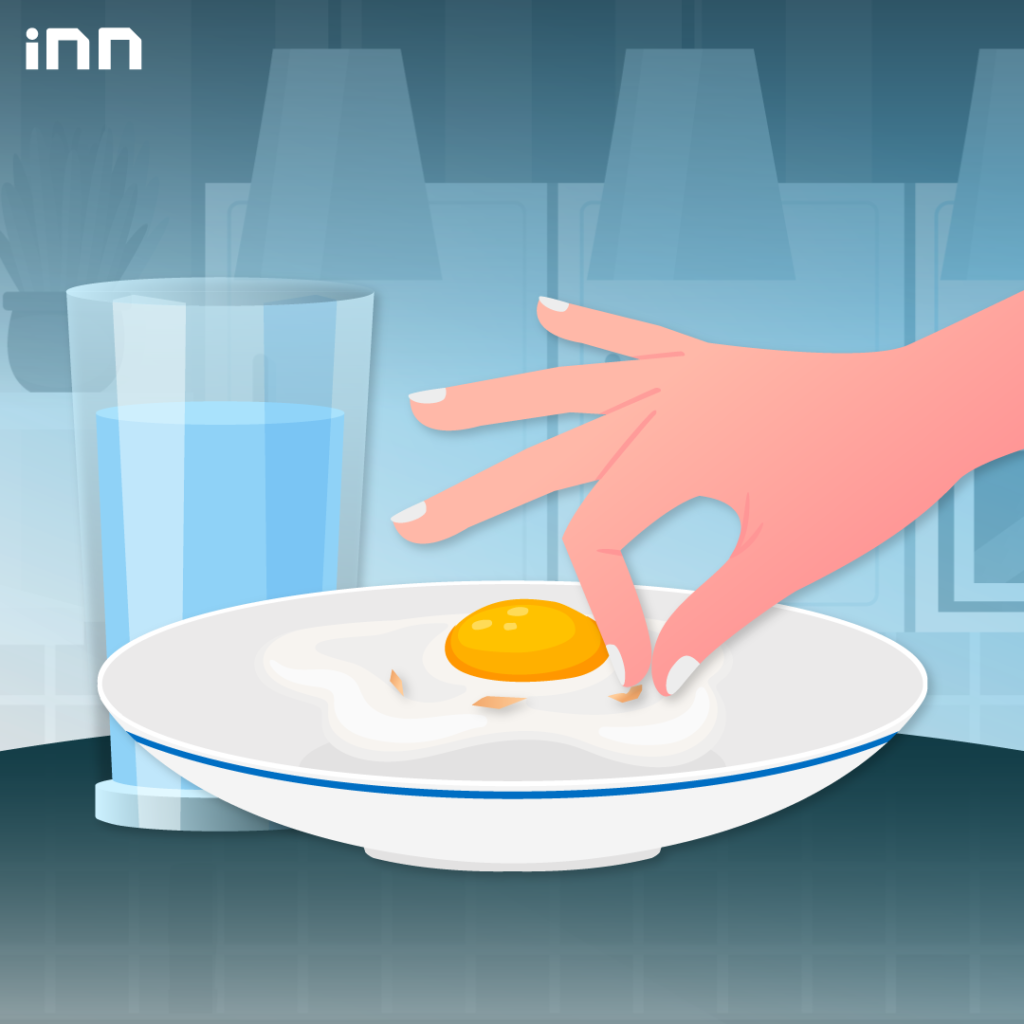 เศษเปลือกไข่ที่ตกลงไปในอาหาร หรือที่ตกไปเวลาตอกไข่ จะหยิบออกมานี้ยากมากๆ แต่เพียงแค่เอานิ้วจุ่มน้ำให้เปียก เปลือกไข่ก็จะเกาะติดนิ้วของเราเอง