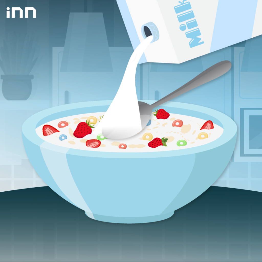 4.เทนมใส่หลังช้อน เวลาจะกินซีเรียล นมจะไม่กระเด็น