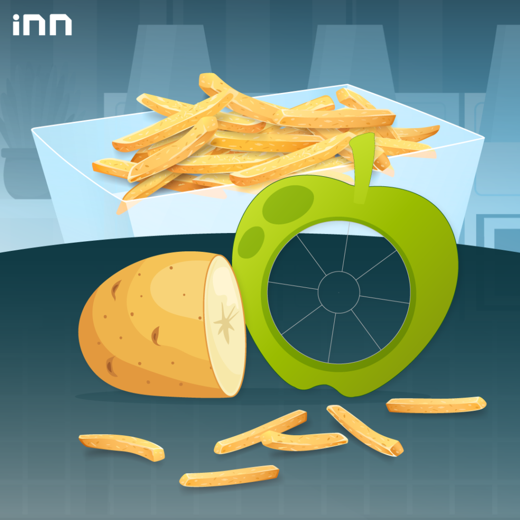 ใครมีที่หั่นแอปเปิ้ลอยู่ที่บ้าน ลองใช้กับมันฝรั่งดู แล้วคุณจะได้เฟรนช์ฟรายส์สำหรับนำไปทอดได้อย่างง่ายดาย