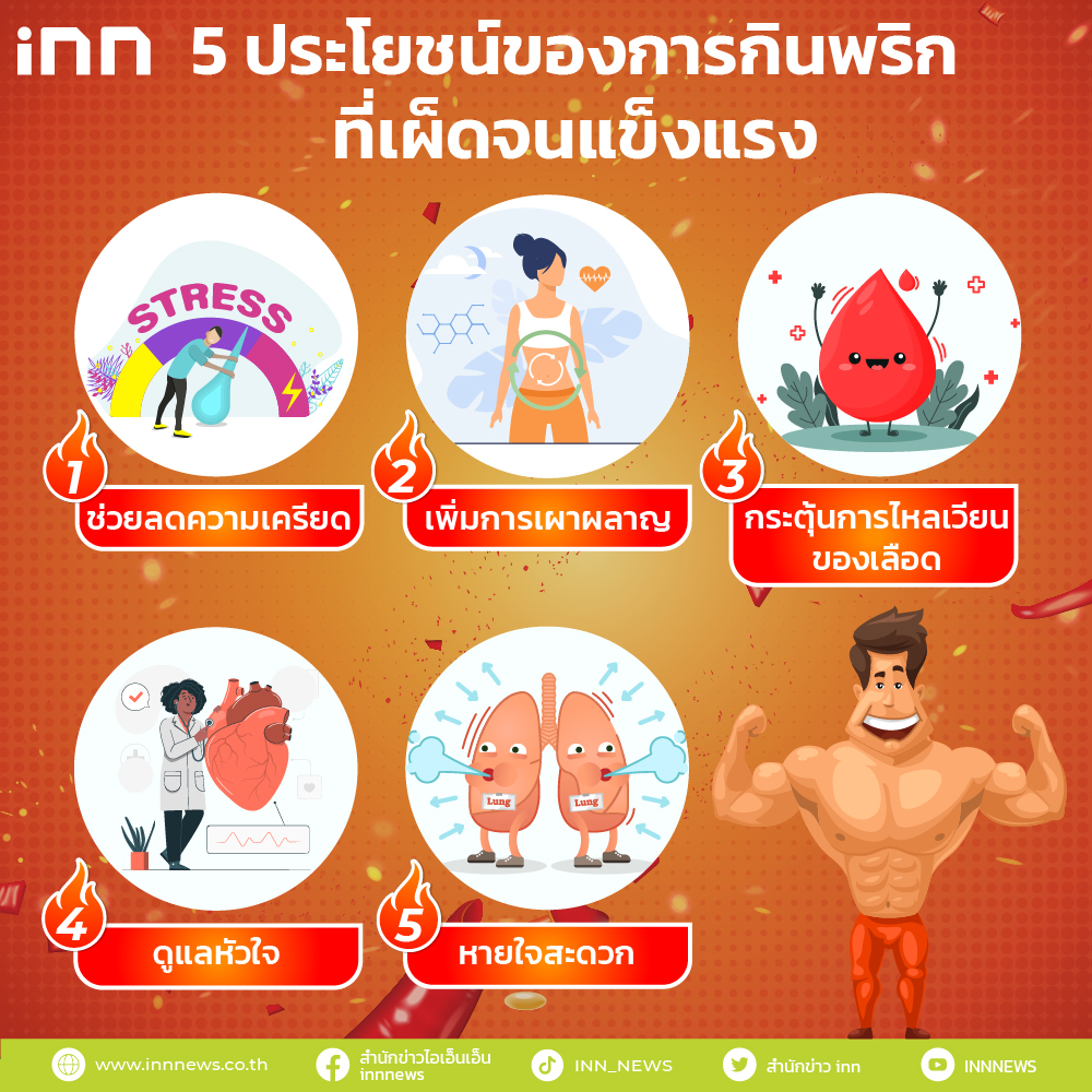 และนี่คือประโยชน์ของพริกที่เรานำมาฝากกัน การกินเผ็ดช่วยให้ระบบการทำงานของร่างกายมีประสิทธิภาพดียิ่งขึ้นก็จริง แต่ถ้าหากกินเยอะเกินไปก็อาจส่งผลเสียได้เหมือนกัน หรือสำหรับใครที่ไม่กล้าทานเผ็ดแต่อยากลองทานขึ้นมา เราก็มีวิธีดับอาการเผ็ดไว้ช่วยเหลือยามฉุกเฉินเหมือนกัน ติดตามบทความสุขภาพดีๆ หรือ ไลฟ์สไตล์อื่นๆได้ที่ iNN Lifestyle
