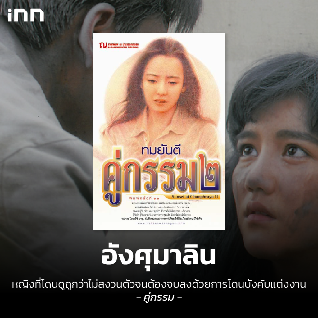 - อังศุมาลิน : หญิงที่โดนดูถูกว่าไม่สงวนตัวจนต้องจบลงด้วยการโดนบังคับแต่งงาน – คู่กรรม