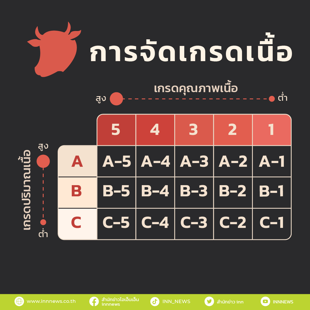 เชื่อว่าแฟนๆสายบุฟเฟ่ต์ ชาบู เนื้อย่างทั้งหลายคงรู้จัก เคยลิ้มลองเนื้อญี่ปุ่นหรือที่คุ้นหูบ่อยๆก็จะเป็น เนื้อวากิว เป็นแน่ แล้วแต่ละร้านก็จะมีระดับพวงท้าย ตัวอย่างที่เราคุ้นเคยกันดีก็น่าจะเป็น เนื้อวากิว A3 A4 หรือจนไปถึงระดับ A5 แล้วเคยสงสัยกันไหมว่าตัวอักษรและเลขพวกนี้มีความหมายอย่างไร วันนี้ INN จะพาแฟนๆทั้งหลายไปรู้จักกับวิธีการแยกระดับเนื้อกัน