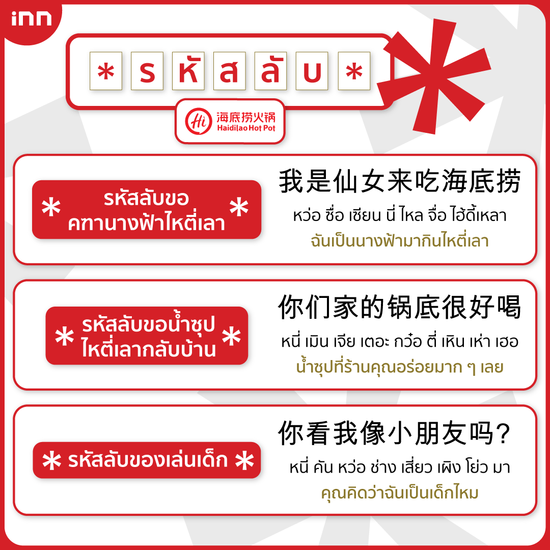 หากใครกำลังลองกินไหตี่เลาอยู่แล้วอยากได้ของติดไม้ติดมือกลับ ก็ลองฝึกภาษาจีนกับพี่ๆพนักงานได้เลย แต่ถ้าใครกลัวว่าประโยคไหนจะพูดไม่ชัด ก็ให้พนักงานช่วยพูดไกด์ก่อนได้เหมือนกันนะ
