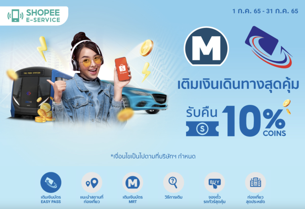 เติม Easy Pass – MRT ตอนนี้คืน 10% ทันทีที่ Shopee เท่านั้น