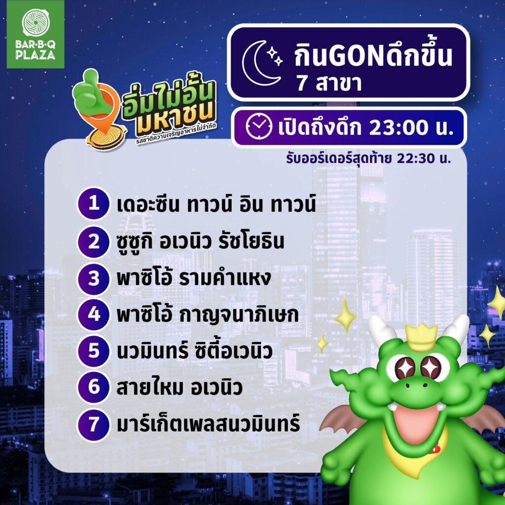 สาขา Bar B Q Plaza ที่ปิดตอนดึก 5 ทุ่ม