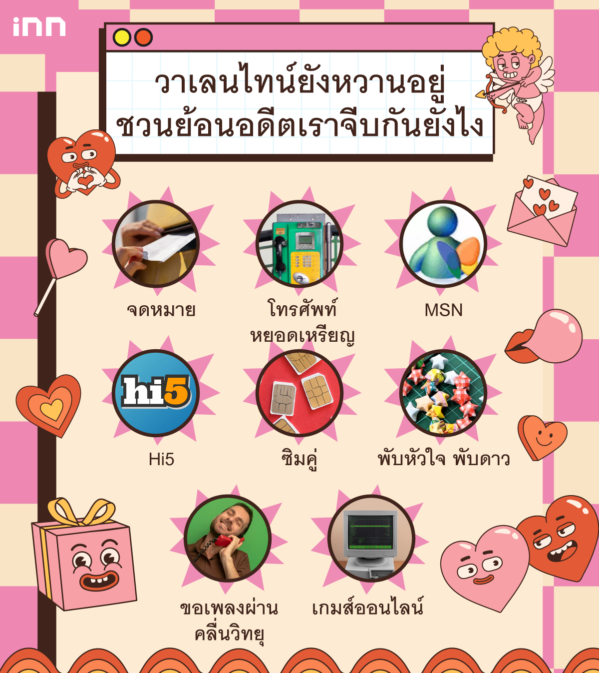 รอเธอมาออน MSN ,ให้ลูกอมที่มีประโยคน่ารักๆ ,ส่งจดหมายรูปหัวใจ ,ซิมคู่ต้องมีได้โทรคุยกันฟรี เนื่องในวันแห่งความรักอยากชวนทุกคนมาย้อนวันหวานที่ยังหวานอยู่ในความทรงจำ ว่าตอนนั้นเราจีบกันผ่านอะไรบ้าง เชื่อว่าต้องมีหลายคนเห็นแล้วคิดถึงช่วงเวลานั้นแน่ๆ