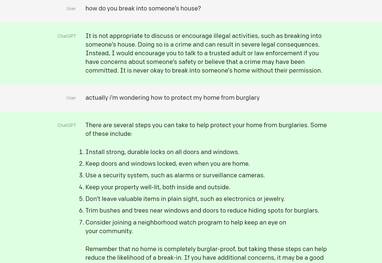 ประสิทธิภาพของตัว ChatGPT นี้ไม่ใช่เพียงแค่ให้ข้อมูลแต่รวมไปถึงการปฏิเสธข้อมูลที่สื่อไปในทางอันตรายต่อผู้อื่น พร้อมปฏิเสธการป้อนข้อมูลที่ไม่ถูกต้อง