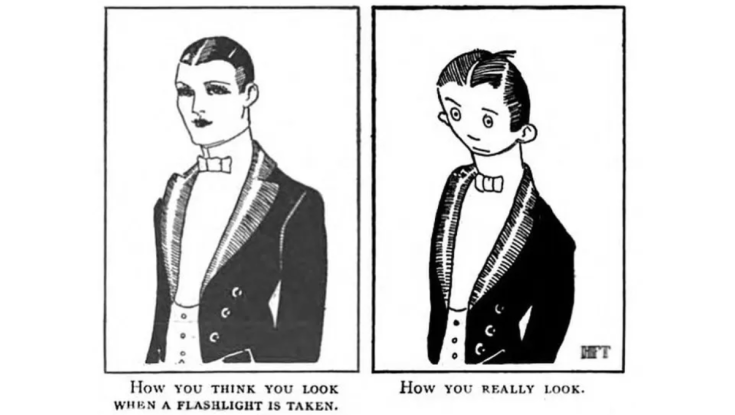 ภาพการ์ตูนถูกค้นพบในนิตยสารการเสียดสี The Judge (1921) พิมพ์โดยมหาวิทยาลัยไอโอวา ซึ่งผู้ใช้ Tumblr ที่ชื่อว่า Yesterday’s Print ได้ทำการโพสต์ภาพจากสื่อสิ่งพิมพ์สมัยก่อนจนเกิดข้อถกเถียงกันว่า หรือว่านี่จะเป็นมีมแรกของโลกก่อนจะเกิดยุคของอินเทอร์เน็ตกับ “How you think you look like / How you really look”
