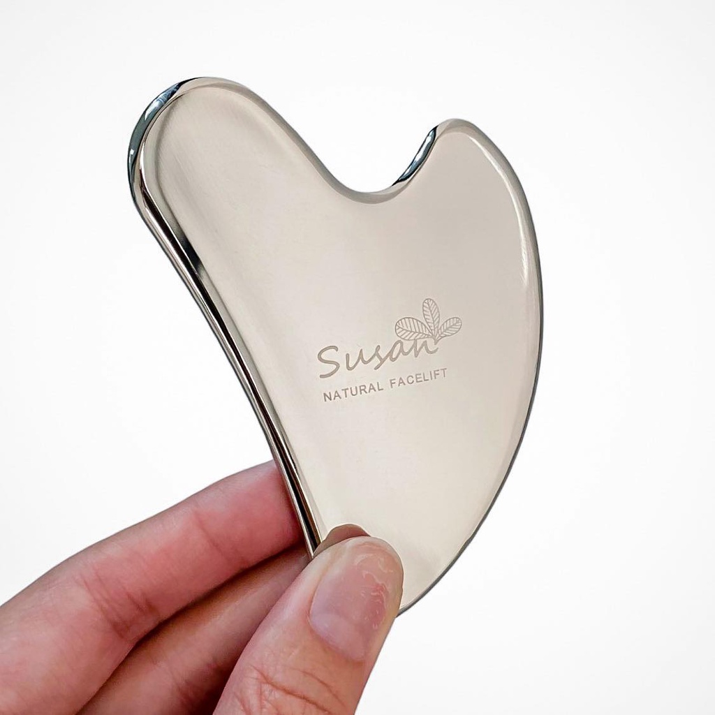 กัวซาสแตนเลสจาก Susan ผลิตโดยใช้วัสดุสแตนเลสแท้ มาในรูปทรงหัวใจเหมาะกับใช้นวดกระชับผิวหน้าและลำคอ ทั้งยังช่วยลดบวมด้วยความเย็นจากธรรมชาติของสแตนเลส