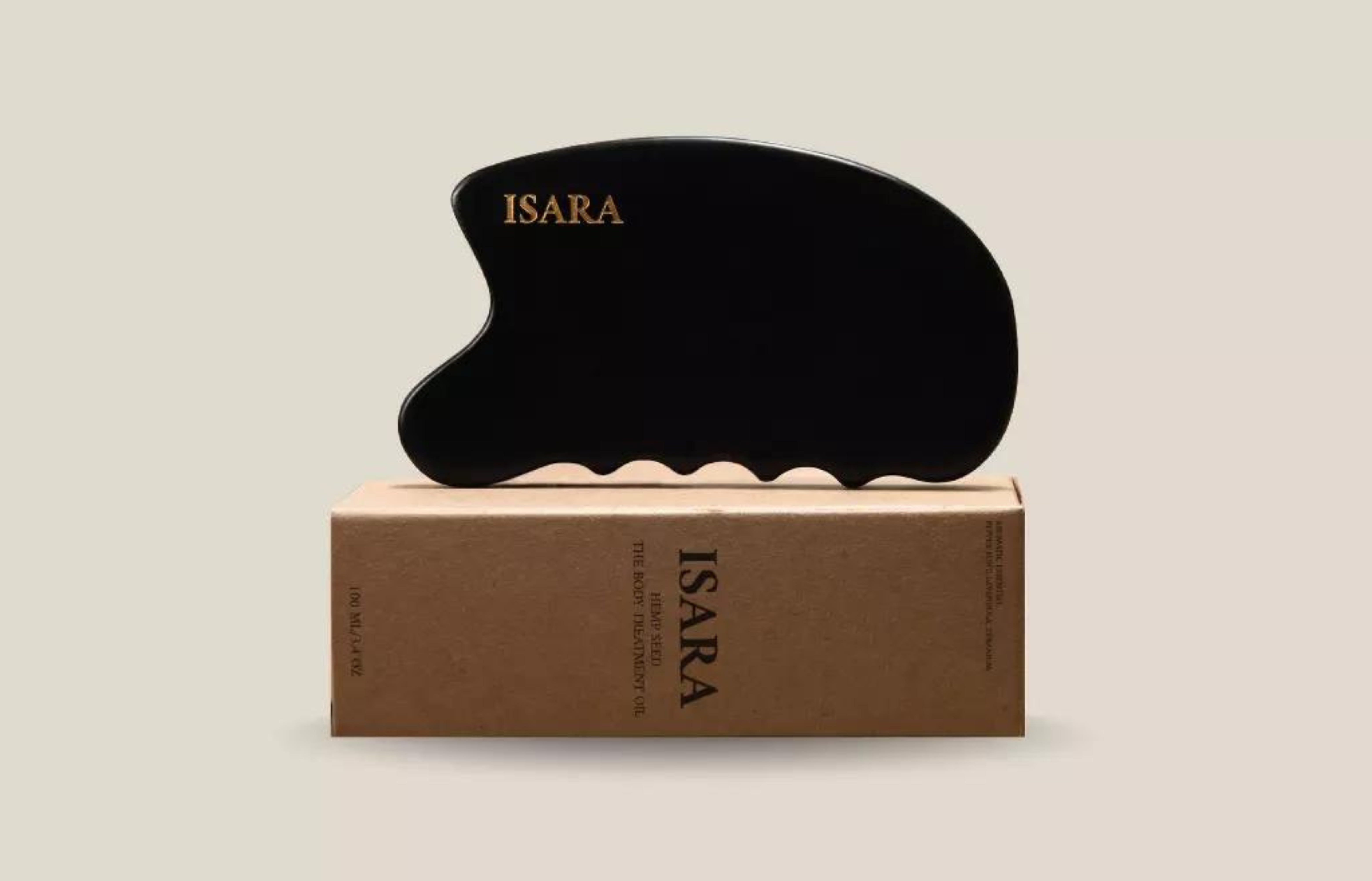 ร้าน Isara Beauty ทำจากหินเบียน (Bian) สีดำ เป็นหินผลึกขนาดเล็ก มีแร่ธาตุมากกว่า 40 ชนิดที่มีประโยชน์ต่อร่างกายมนุษย์ อีกทั้งยังช่วยกระตุ้นการสร้างเซลล์และช่วยให้มีสุขภาพดี กัวซาหินรุ่นนี้ใช้นวดได้ทั้งใบหน้าและลำตัว
