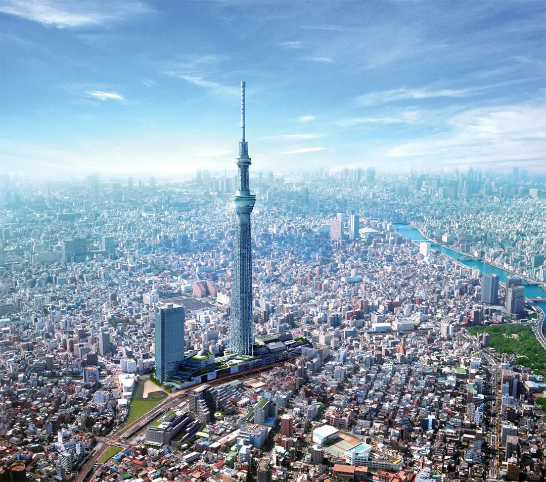 ในปัจจุบัน โตเกียวทาวเวอร์ (สูง 333 เมตร) มีความสูงไม่พอที่จะส่งสัญญาณคลื่นโทรทัศน์แบบดิจิทัลให้ครอบคลุม เนื่องจากมีอาคารและตึกสูงจำนวนมากสร้างขึ้นบังสัญญาณบริเวณใจกลางเมือง จึงมีโครงการก่อสร้างโตเกียวสกายทรีขึ้น นำโดยบริษัท โทบุเรลเวย์ จำกัด ซึ่งเริ่มก่อสร้างในวันที่ 14 กรกฎาคม พ.ศ. 2551 แล้วเสร็จในวันที่ 29 กุมภาพันธ์ พ.ศ. 2555 และเปิดอย่างเป็นทางการในวันที่ 22 พฤษภาคม ปีเดียวกัน