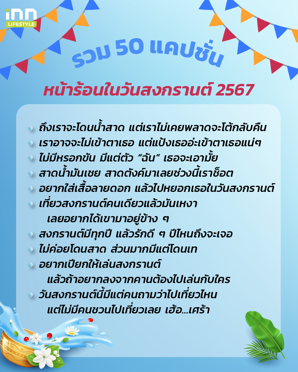 รวม 50 แคปชั่นเด็ด ๆ หน้าร้อนในวันสงกรานต์ 2567