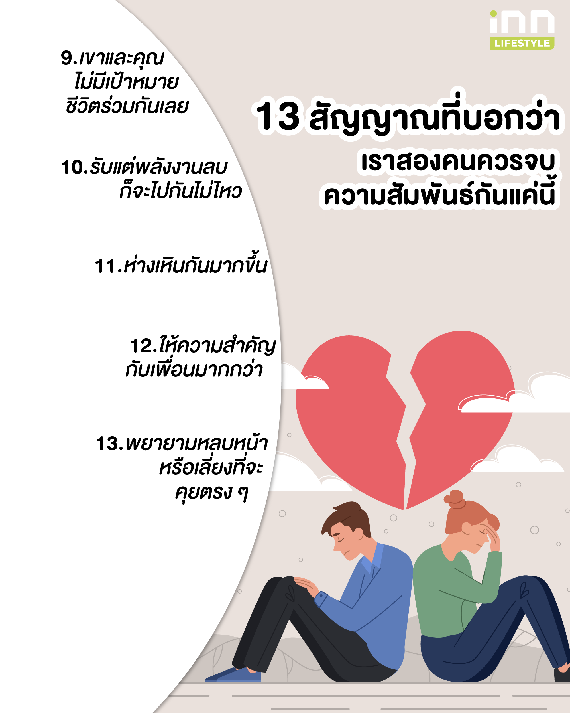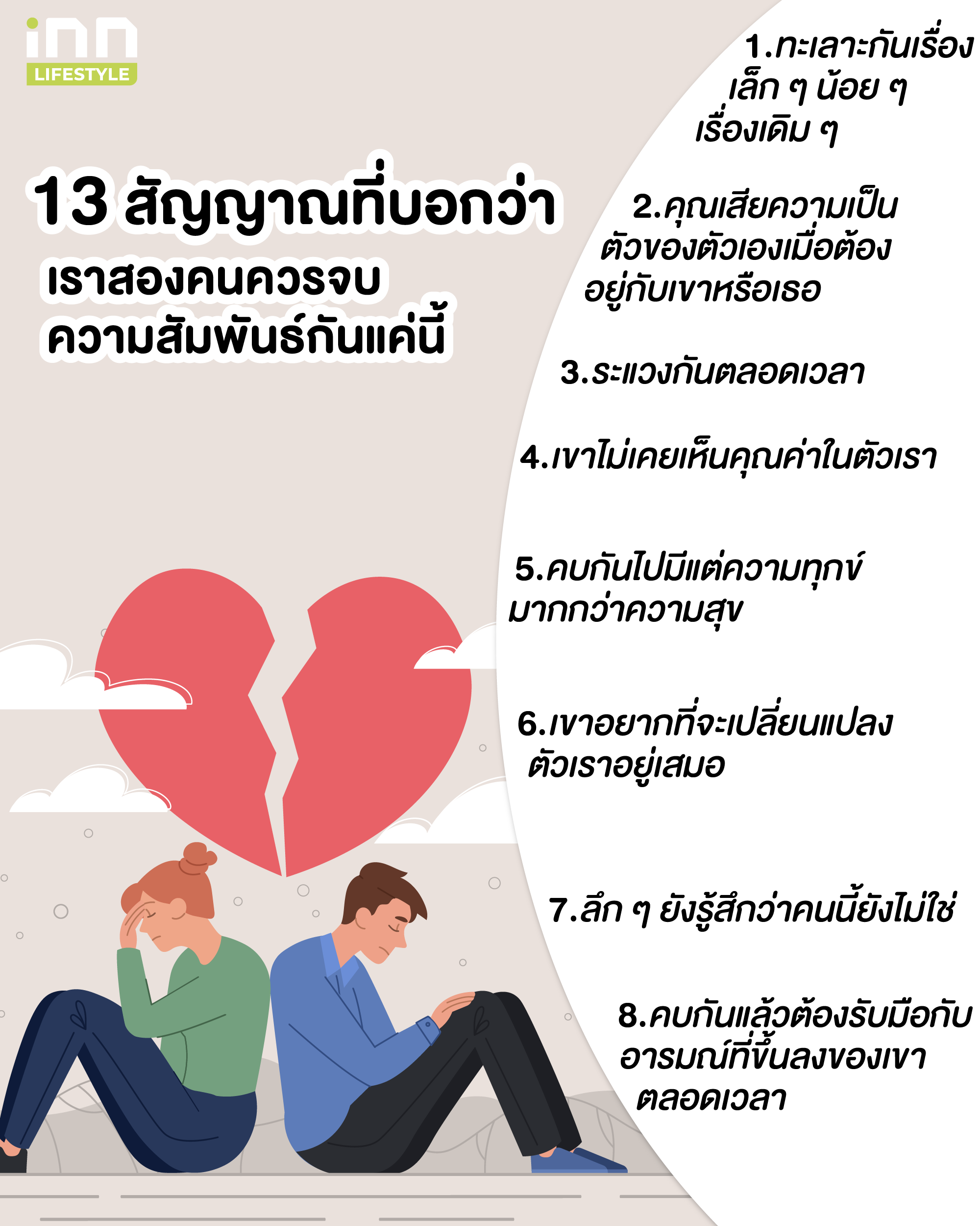 13 สัญญาณที่บอกว่า เราสองคนควรจบความสัมพันธ์กันแค่นี้